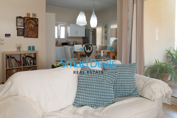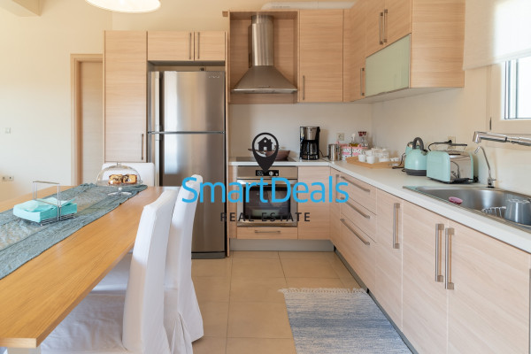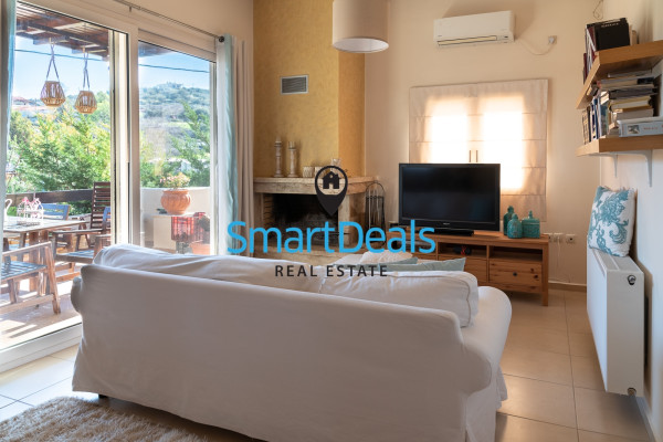Die Bodenwohnung folgt dem Grundstück im Erdgeschoss mit einer eigenen, offenen Küche, einer Lounge mit Kamin, 2 Schlafzimmern, 1 Badezimmer und einem geräumigen Balkon mit Schatten und Blick auf den Berg. Die Wohnungen des Hauses haben moderne Aluminiumrahmen mit doppelter Verglasung, Bildschirmen und elektrischen Fensterläden.