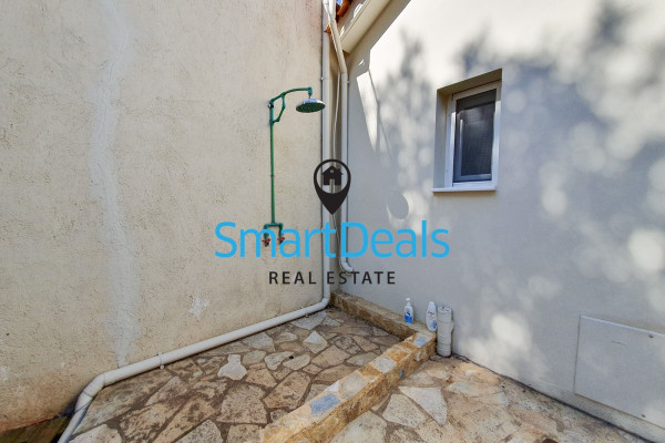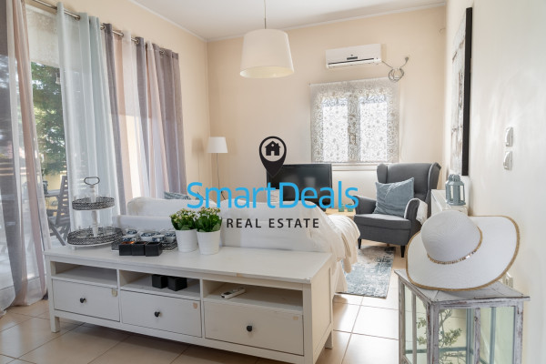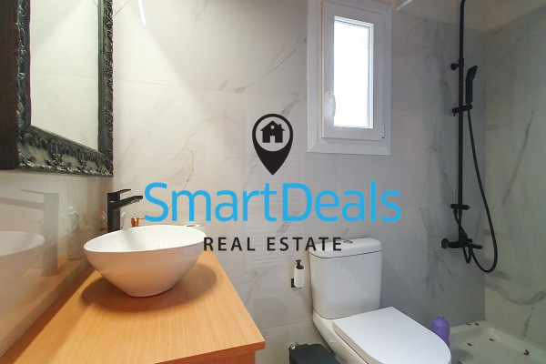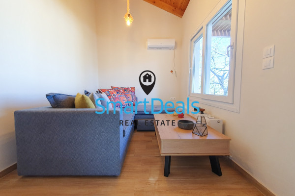Die unabhängige Wohnung im Erdgeschoss hat eine Gesamtfläche von 35 m², mit einer eigenen offenen Küche, einem Wohnzimmer, einem Schlafzimmer, einem Badezimmer und einer eigenen überdachten Terrasse. Es befindet sich neben dem Haus. Es hat moderne Aluminiumrahmen mit doppelter Verglasung und Bildschirmen.