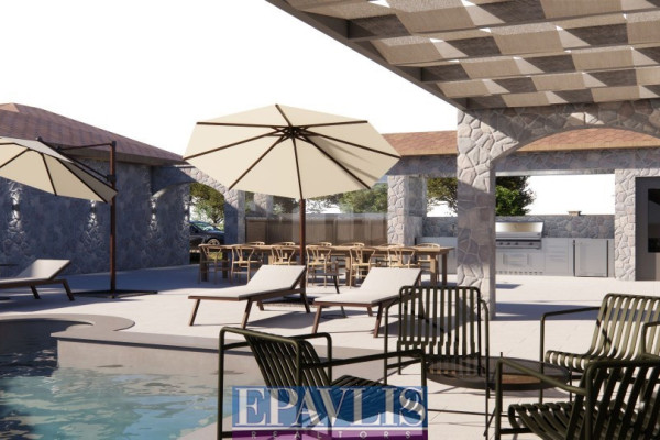Ultra-luxurious stone-built villa of high standards, with a total area of 340 sq.m. on a plot of 2,130 sq.m. with a unique sea view. It is a newly built VIP residence, built on two levels. In particular: Ground floor with living room, fireplace, kitchen, three bedrooms, two bathrooms, semi-basement with living room, kitchen, two bedrooms, two bathrooms, outdoor outdoor kitchen with bbq, swimming pool with shower, room with bathroom, jacuzzi, wc, warehouse 60 sq.m. water heater, external terraces with unobstructed sea view, landscaped garden