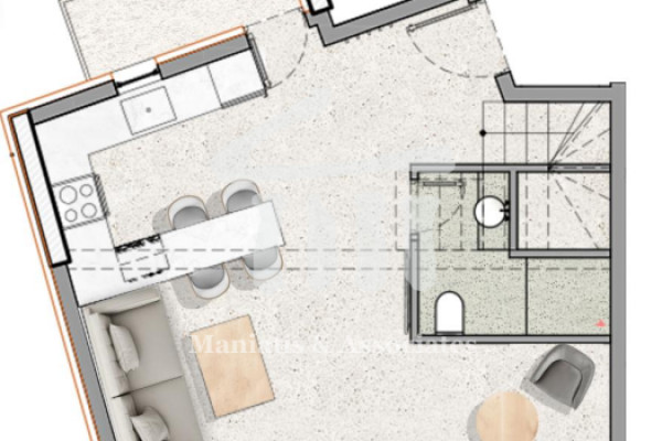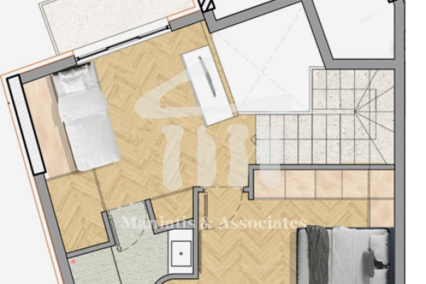 For sale newly built maisonette on the 4th floor with loft in Kallithea, with a total area of 78 sq.m. Two bedrooms, one bathroom, kitchen and living room form the interior layout. One parking space is included. Year of construction 2024, with completion expected in early 2025. Heating is autonomous, with solar water heater and thermal insulation. Aluminum frames with double energy-efficient glazing. Energy certificate rated A+. Flooring made of tiles. Location close to tram, public transport and schools, with direct access to the Stavros Niarchos Foundation, Flisvos Marina and Akti Iliou beach. View of the urban landscape. Northwest orientation. Property is front-facing, bright and dual-aspect. Additional features include security door, video intercom, alarm system, fiber optic infrastructure, photovoltaic panels for communal areas, electric vehicle charging station and shared garden. Sale price €360,000. Maniatis & Partners, phone +30 2104190703, email