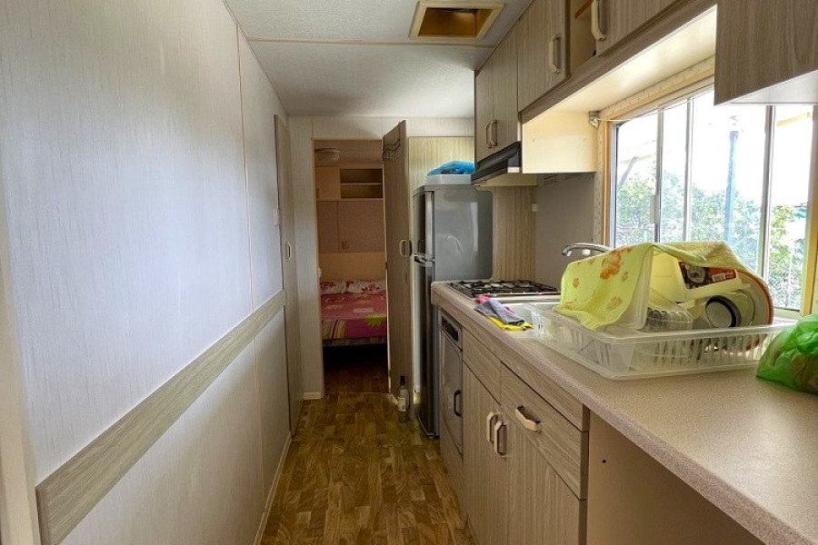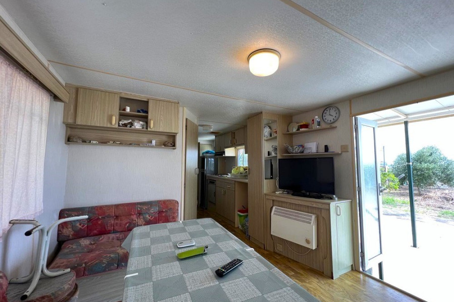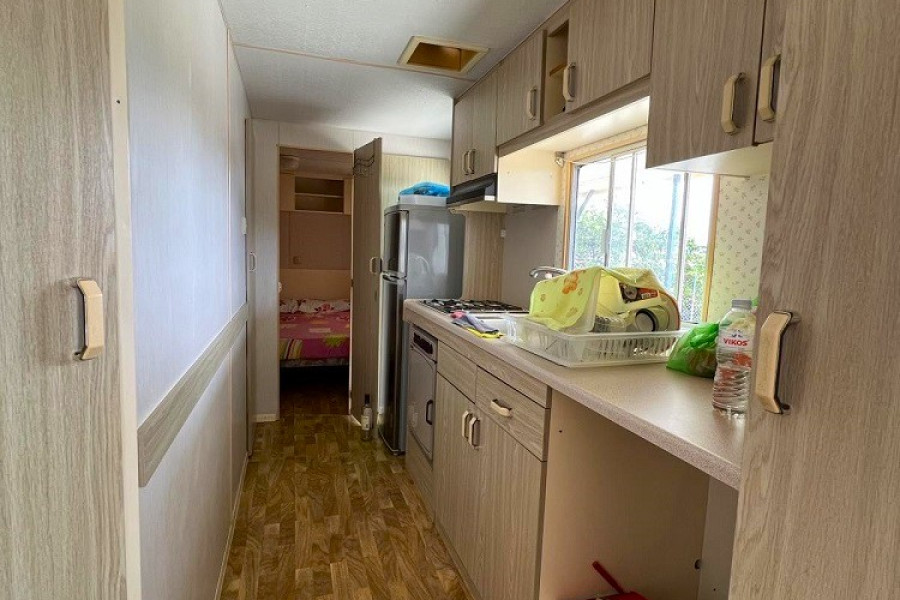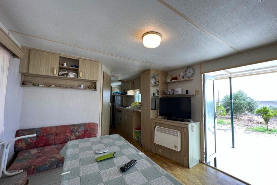 Zwei Schlafzimmer, ein Badezimmer und eine Küche. Große Pergola, Außenküche, Garten, eingezäunt, Platz für Parkplatz.