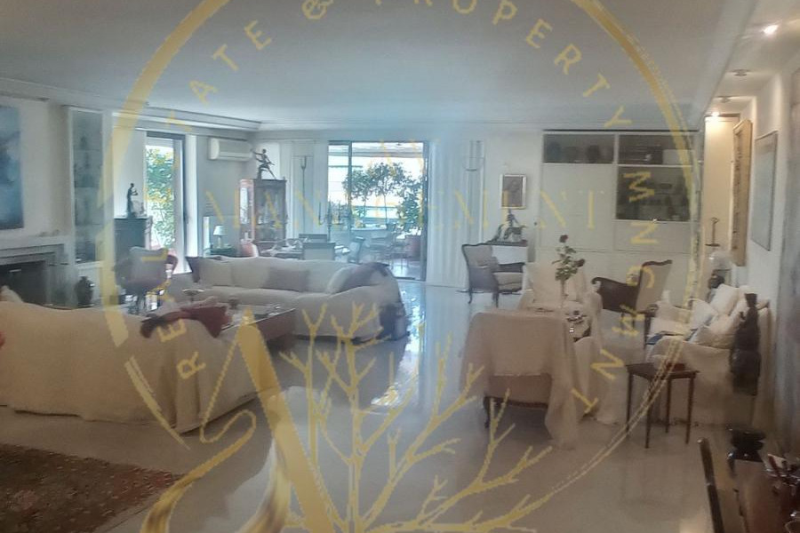 Located in one of the most prestigious residential areas of Palaio Faliro, in Panagitsa, this exceptional 6th–7th floor maisonette offers a rare combination of generous living spaces, refined materials and panoramic views of both the sea and the surrounding landscape. The property has a total surface of 220 sq.m. and was constructed in 1996, occupying a privileged position within a well-maintained residential building with elevator access.Developed over two levels, the residence comprises three spacious bedrooms, three WC, one full bathroom, a staff room, two elegant living rooms each featuring a fireplace, a dedicated dining area and a separate fully equipped kitchen with built-in appliances. The layout ensures privacy, functionality and effortless flow between living and entertaining areas, making it ideal for both family living and sophisticated hosting.Particular emphasis has been placed on the quality and origin of the materials used throughout the property. All floor tiles and sanitary fittings have been imported from Beirut, while all marble surfaces are crafted from premium Naxos marble, offering timeless elegance and superior durability. The residence is equipped with two fireplaces, seven air-conditioning units, two solar water heaters, a private telephone center, barbeque facilities, three-phase and night electricity supply, and central heating powered by natural gas.One of the property’s most distinctive features is its exceptional outdoor space. On the 7th floor, an impressive 35 sq.m. terrace features a built-in seating area and barbeque, while expansive perimeter balconies provide uninterrupted panoramic views towards the sea and the mountains. In addition, the property enjoys exclusive use of the rooftop, offering an unparalleled level of privacy and a truly rare lifestyle asset for the area.The maisonette also includes two underground storage rooms and one private parking space. It is ideally located just 1,000 meters from the renowned Flisvos Marina and beachfront, and within close proximity to schools, upscale retail, fine dining, and public transportation.This is a distinguished residence of high specifications, designed for buyers seeking space, quality craftsmanship and a refined lifestyle in one of the most sought-after coastal locations of the Athenian Riviera.