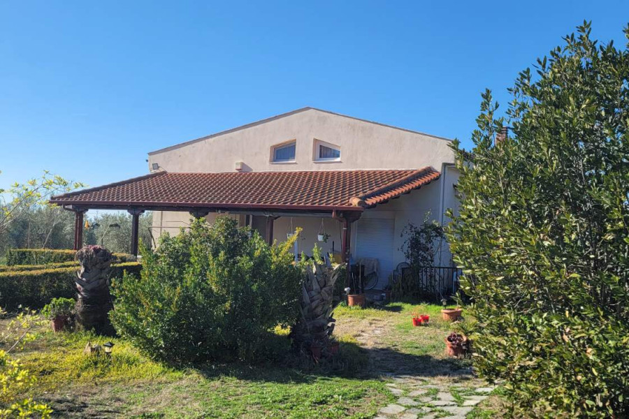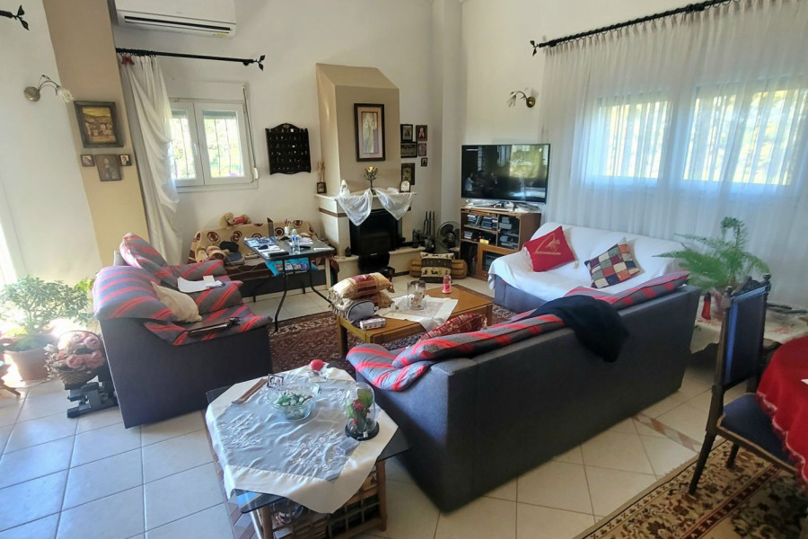FOR SALE: excellent detached house of 142 sq.m., within a privately owned plot of land of 6,580 sq.m., in the area of ​​Agios Pavlos (Kallikratia). The house was built in 2004 with excellent quality building materials, has a security door, synthetic frames, screens, solar water heater, underfloor heating, fireplace, air conditioning, boiler, 2 water tanks, satellite TV, parking spaces. The plot is filled with olive trees and fruit trees, beautifully landscaped outdoor green space with its own drilling and all the necessary equipment for the care of the plot. On the ground floor we find a single space where the living room with fireplace, the kitchen, two large bedrooms and the bathroom are located. In the attic, which is accessed by an internal wooden staircase, there is a small living room, a bedroom and a large storage room-cloakroom. Ideal residence for permanent residence or for a holiday home since the distance from the nearest beaches is only 3 km. from the house. A property that is truly worth your visit! For any further information or clarification, please do not hesitate to contact us. The information and characteristics of the property have been registered based on data and information provided by the principal or the owner of the property. The location and position on the map are indicative. When indicating the property, it is necessary to show the Police Identification Card and the Tax Identification Number. For any real estate need, contact us. We are at your disposal for any information, advice and action.