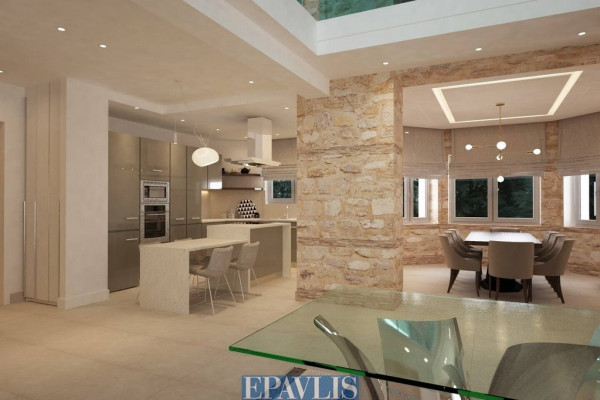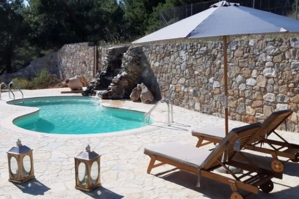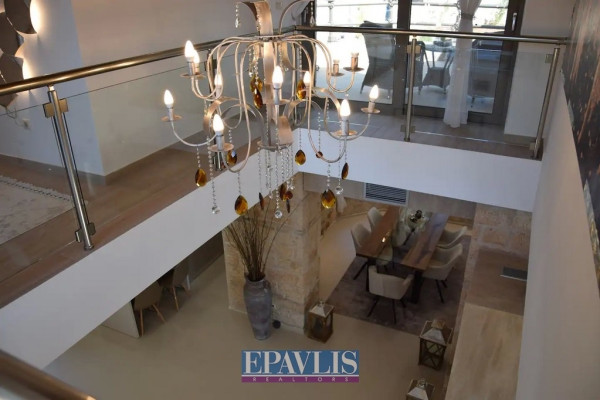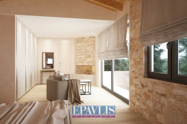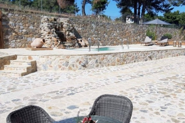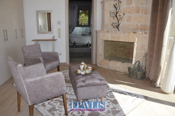 Varnavas, for sale villa 350 sq.m. of impressive architecture on an area of 4.8 acres. The ground floor reception area leads to the living room with the fireplace, the kitchen and the guest wc. On the 1st floor there are 2 bedrooms (one of which is a master, with en suite bathroom) and a terrace that offers a view of the forest, while in the attic there is a third bedroom. In the semi-basement there is a fully equipped guest house - cellar, which operates with absolute autonomy as a residence. The tower has been built under the supervision of a renowned architect, having all the facilities of a modern construction. The property also includes a small church of Byzantine architecture, in harmony with the high aesthetics of the residence. On the upper side of the area there is a swimming pool overlooking the beautiful natural landscape. The villa is located in a quiet, green location, just ten minutes from Varnavas beach and about half an hour from the center of Athens. Price: €890,000. EPAVLIS REAL ESTATE AGENTS, Tel. 2109945719, email: