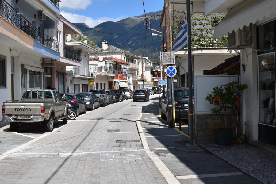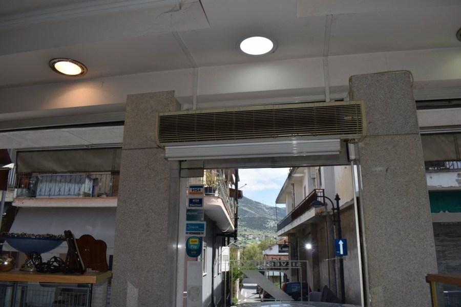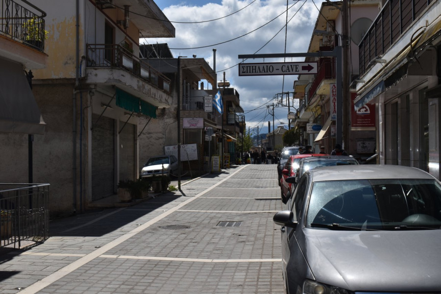 Seine Größe macht es für viele Verwendungen geeignet und viele Geschäfte arbeiten im breiteren Bereich. Mit einer Fassade an der Hauptstraße von Spilaios Perama.
