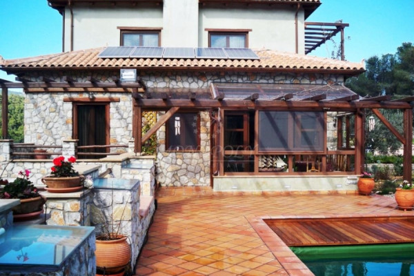 Verkauf Einzelhaus , Korinthia 365 quadratmeter ,Erdgeschoss , 3 ebenen ,7 schlafzimmer ,4 bäder , 1 parkplätze , 2000 baujahr , features: Sicherheitstür, Benachrichtigung/Alarm, Abstellraum, Feuerstelle/Kamin , Doppelverglasung, Moskito, Markise, Terrassen, BBQ/ Grill, Klimaanlage, Sonnenenergiesysteme, Autonom - Benzin 1 kamine ,  in der Nähe: Ησυχο περιβάλλον,παραλία,Αγορά,Συγκοινωνίες,  preis: 480.000€