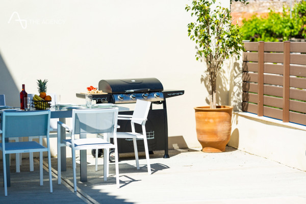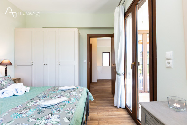 This stunning villa for sale in Rustica, Rethymno has a total area of 180 sq.m., built on a plot of 352 sq.m. with fencing, ensuring absolute privacy. The outdoor area includes a large swimming pool and sunbathing area, dining area with outdoor gas grill and private parking for several cars.