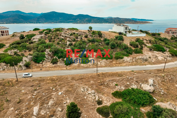 Privilegiertes Grundstück von 500 qm. mit herrlichem Blick auf Athos und die Bucht des Berges Athos in Kriaritsi auf Sykia, oberhalb des Strandes von Tigania.