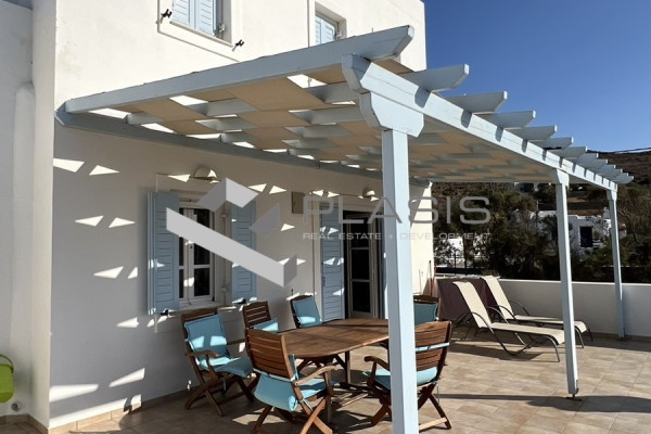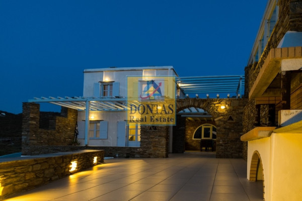 Tinos Chora, Detached house, 350 sq.m., On a plot of 3200 sq.m., Amazing condition, 2 Level(s), Cycladic Architecture in a unique location, 100 m. from the sea with Unobstructed view of the sea and the sunset, 4 Bedrooms, 4 Bathroom(s), 2 Kitchen(s), 4 Parking, Year built in 2015, Energy Certificate: B, Floors: Marble + Tiles, Frames: Wooden, Features: Security Door, Storage, Fireplace (2), Double Glazing, Screens, Verandas, BBQ, Pets Allowed, Air Conditioning, Swimming Pool, Garden, Newly Built, These are two villas at a distance of 5 km from the town of Tinos on a plot of 3200 sq.m. (The plot has a Swimming Pool, a BBQ, a Chapel (7 sq.m.) and a one-room Guest House for Accommodation, stone-built 70 sq.m.), Both maisonettes are furnished and have large verandas, All bedrooms have sea views (One villa has a GROUND FLOOR with a kitchen, guest wc and a bedroom. On the UPPER level there are 2 bedrooms, a wc, a living room and a closed outdoor living room of 35 sq.m.), The 2nd Villa also has 2 levels that are connected internally. The ground floor has a living room, living room, kitchen, and wc and the UPPER FLOOR with 2 bedrooms and a wc, (Suitable for Commercial rental, ), View: Sea, distance from: Sea(m): 100, Price: €1,100,000, Tel: 2106231555 6980502020, www.dontasrealestate.gr ,