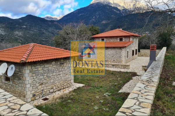 Lefkassio, Detached House, 108 sq.m., On a plot of 19350 sq.m., 2 Bathroom(s), 2 Kitchen(s), 4 Parking, Energy Certificate: D, Floors: Oak, Frames: Wooden, Features: Storage, Fireplace, Attic, Internal Staircase, Double Glazing, Pets Allowed, Stone, Traditional house, Luxurious, Airy, Frontage, Bright, Air conditioning, Painted, Stone and wood mansion. Traditional with 60 cm stone masonry. Wooden luxury frames. Wooden floor (The area of 19,350.51 m2 full of walnut and fir trees. It is not forested. Possibility of tourist development. Within the village of Valtos Kleitoria. 30 minutes from the ski resort of Kalavryta, 40 minutes from the ski resort of Mainalo. 30 minutes from Kalavryta. 1,000 meters altitude. 15 km dirt road to Lake Doxas through Kynigos channel. Next to Planetero-sources of the Aroani River and the cave of Limnon. 200km from Athens via Artemisio), The total area of 19,350.51 square meters consists of three adjacent areas of 7,089.60 square meters where the house, 6,461.81 square meters and 5 (All plots face Planitero street - Limni Doxas), It consists of a single living room-kitchen - dining room with an excellent and large fireplace, with Homad furniture, SMEG refrigerator, etc., with a raised ceiling and a wooden loft where there is a living room - sofas that become a Homad bed (There are two bathrooms - wc with shower and the There is a bedroom with two luxurious wooden bunk beds and a wooden wardrobe, View: Panoramic, Price: €850,000, Tel: 2106231555 6980502020, www.dontasrealestate.gr,