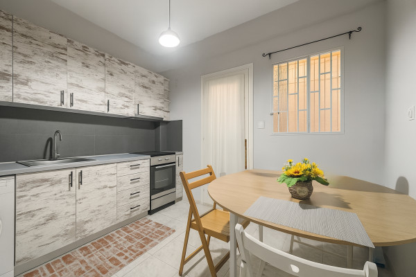 For sale 59sqm Ground floor apartment in the Ellinoros, in a quiet location just 550m from Katechaki Metro Station, with easy access to the market and means of transport. It consists of a hallway, a reception area, a spacious dining room, a bedroom and a bathroom. It is airy with access to an inner courtyard, partially renovated in 2023 (kitchen, bathroom, wall refreshing, floor care, new security door). It is partially furnished with electrical appliances, while heating and cooling is covered by air conditioner. The property is leased and is ideal for investment use. Price 140,000 €