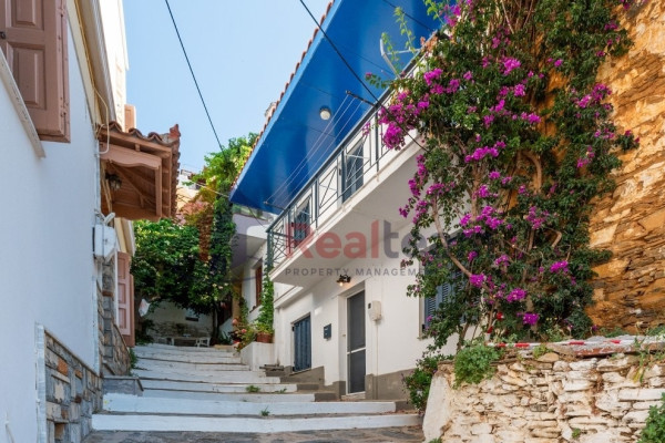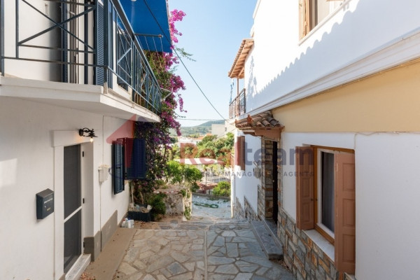 Eigentumsberatungspaar. Ein Haus mit 86 m² wird ausschließlich auf einem 45 m² großen Grundstück in Skopelos zum Verkauf angeboten. Es ist eine südliche Orientierung, Fassade und sehr hell. Es wurde 1950 erbaut und 2007 renoviert. Mit einer inneren Treppe finden wir die zwei Schlafzimmer im 1. Stock, die beiden Schlafzimmer zusammen mit dem Badezimmer. Der Boden ist Fliesen - Holz, Aluminiumrahmen und eine Klimaanlage zum Abkühlen - Heizung. Es verfügt über eine gepanzerte Sicherheitstür, Bildschirme und umfangreiche Kleiderschränke. Auf der 2. Ebene des Hauses finden wir immer noch einen geräumigen, leuchtenden Balkon mit Blick auf die Straßen der Insel. Es ist in einer Fußgängerstraße in der Nähe des Hafens, dem Strand, den Restaurants und dem lokalen Markt zugänglich. Es ist eine ausgezeichnete Wahl, Ihr Landhaus unterzubringen. Skopelos ist eine großartige Insel nördlicher Sporaden. An den Smaragdstränden trifft der üppige Berg das Blau des Meeres und macht seine Strände am schönsten im Mittelmeer. Für ihre besondere Schönheit wurde sie auch für den Dreh des Films "Mamma Mia" ausgewählt. Es ist aus den Häfen von Volos, Thessaloniki, Agios Konstantinos und Mantoudiou zugänglich.