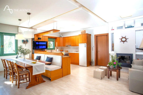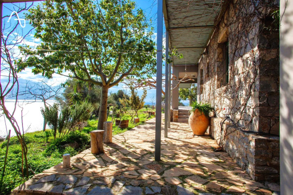 The outdoor space features a BBQ with a wood -fired oven and gazop, a garage with electric garage doors, a complete fire extinguishing system, water tanks (70km & 40sqm), anti -seismic construction, planted estate with olives, lemons, pomegranate and other trees.