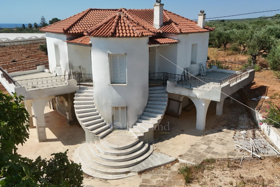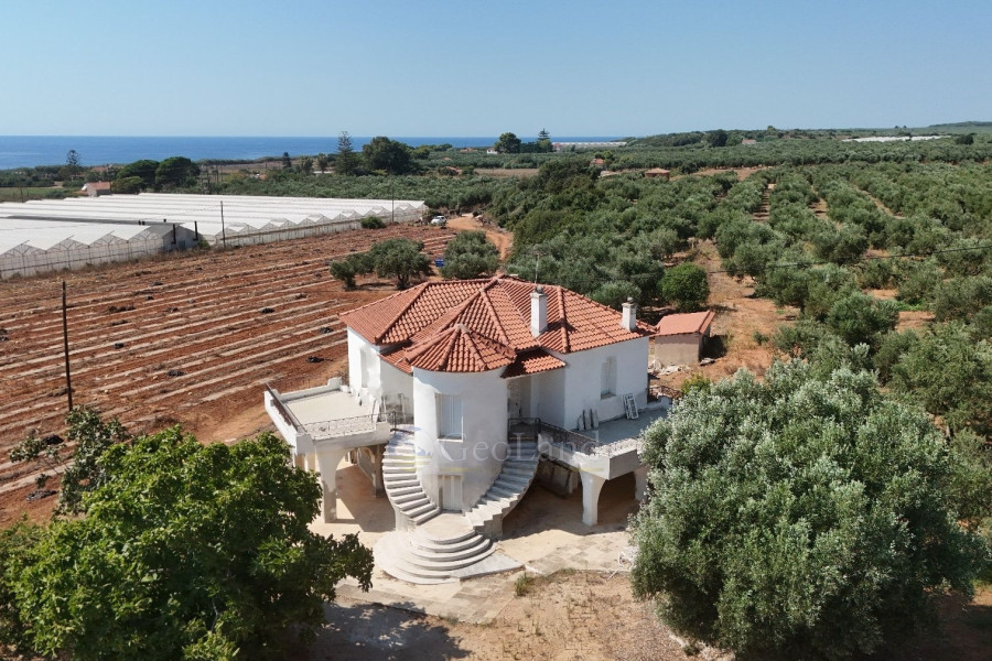 Property Code: 7504 - Villa FOR SALE in Filiatra Agia Kiriaki for € 1.300.000 . This 243 sq. m. Villa consists of 2 levels and features 5 Bedrooms, Livingroom, Kitchen, 4 bathrooms . The property also boasts Heating system: Individual - Electric, marble and wood floor, view of the Sea, Window frames: Aluminium, Armourplated door, parking, a storage unit sqm, garden, fireplace, insect screens, solar-powered water heater, ceramic roof, open space, internal staircase. The building was constructed in 1987 Plot area: 26035 s.q. . Building Energy Rating: C Distance from sea 500 meters, Distance from the city center: 2500 meters, Distance from nearest village: 1000 meters, Distance from nearest airport: 40000 meters,