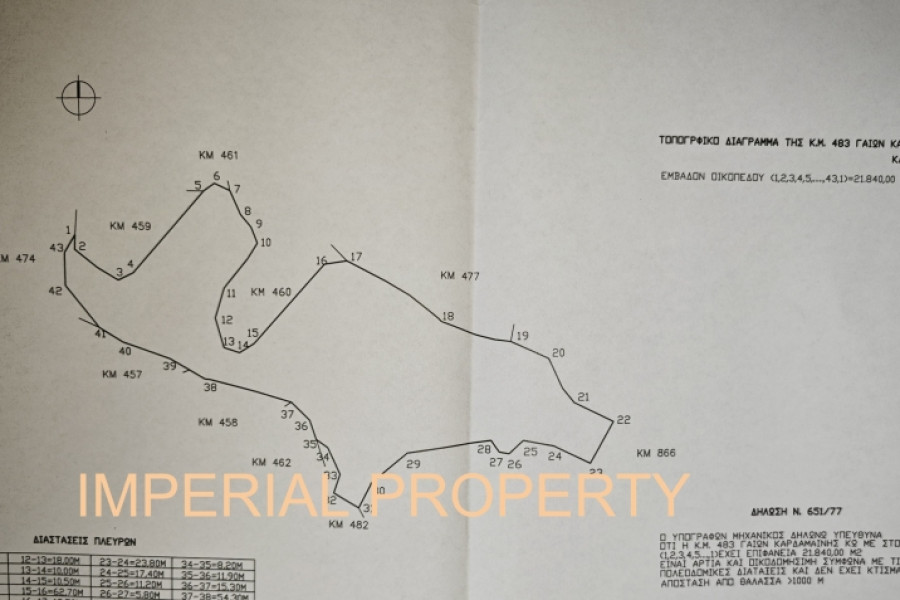 Kos Kardamena area Platani plot of land for sale 21,840 sq m in an excellent location, outside the plan but even and buildable. Facade on the provincial road of Antimachia and Kardameni 60 meters slightly sloping. The plot is located on the borders of the communities of Antimachia and Kardameni. The plot has a 10% slope, height 7.5 meters, area 4,000 sq m (can be subdivided) Per 4000 sq m, build 200 sq m. Without subdivision, build 400 sq m. residence. For offices and professional use, build 600 sq m. for hotel business SD 0.2 (according to the P.D. 24/5/1985 GG 270 D 31-5-1985)The plot is in an advantageous location, 2 km. from the Airport, 3.5 km. from the beach and 24 km. from the town of Kos. Price 160,000€ negotiable. Imperial Property Real Estate Agency Tel. 6906385904