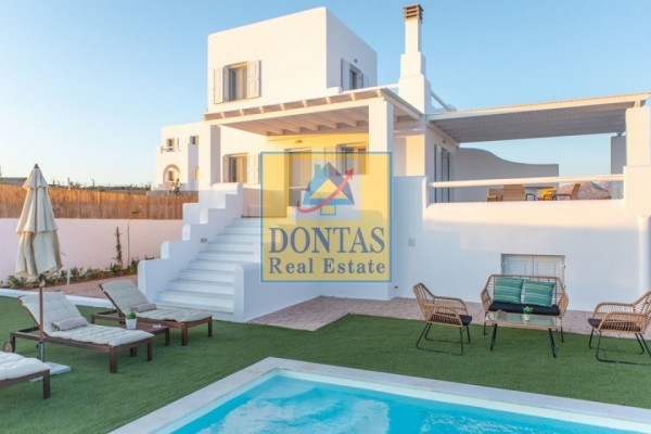 Naxos, PIRGAKI, Maisonette, 217 m², auf einem Grundstück von 2046 m², Erstaunlicher Zustand, 3 Ebenen, AUF EIGENEM GRUNDSTÜCK MIT PRIVATEM POOL, PANORAMA-MEERBLICK, 5 Schlafzimmer, 4 Badezimmer, 2 Küchen, 1 Parkplatz, Baujahr 2020, Energieausweis: B, Böden: Fliesen, Rahmen: Aluminium, Merkmale: Sicherheit Tür, Kamin, Nachtstrom, Elektrik Haushaltsgeräte, Innentreppe, Doppelverglasung, Fliegengitter, Veranden, Haustiere erlaubt, Investition, Luxus, Luftig, Vorne, Hell, Klimaanlage, Rasen, Selbstbewässerung, Bäume, Pool, Garten, Neu gebaut, Landhaus, Geeignet für gewerbliche Nutzung, Wohnzimmer im Erdgeschoss mit Kamin, ein Schlafzimmer, offene Küche (komplett ausgestattet), Badezimmer mit Dusche, Veranda (Hauptschlafzimmer im 1. Stock, Badezimmer mit Dusche, Veranda mit Panoramablick auf die Ägäis), drei Schlafzimmer, Wohnzimmer mit offener Küche, zwei Badezimmer mit Dusche. Diese Ebene verfügt auch über eine unabhängige Außentreppe, die zum Garten führt (es ist möglich, ihn komplett möbliert zu geben), Blick: Meer, Entfernung vom Meer (m): 100, Preis: 950.000 €, Tel.: 2106231555 6980502020, www.dontasrealestate.gr,