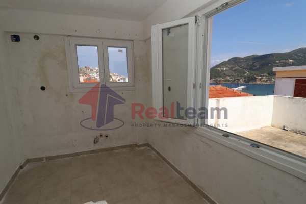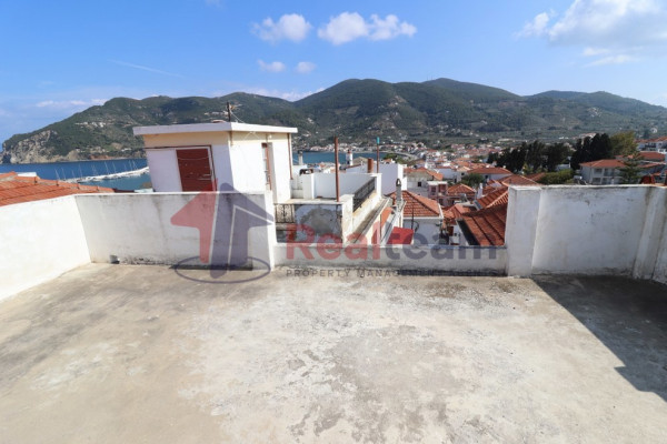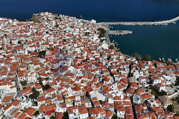 Following the internal marble staircase we are led to the second level where we find two bedrooms and a bathroom and here the frames have been renovated with PVC replacement, tiles and bathroom. Continuing to the third and last level we find a single room with a bathroom where here too a change has been made to the frames and the bathroom. From this space we are led to a comfortable terrace with an unobstructed view of the harbor and the cityscape. It has access from a paved road and is located just 50 meters from the market, restaurants and cafes, 300 meters from the port of Skopelos, 1 km from the nearest beach of Agios Konstantinos and 38 km from Skiathos Airport. The orientation of the property is North-East.