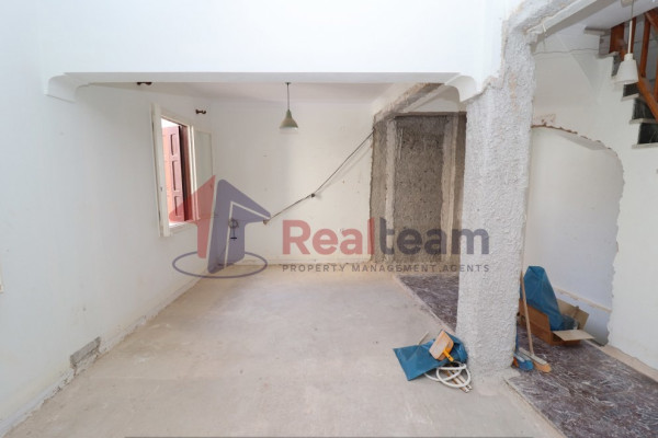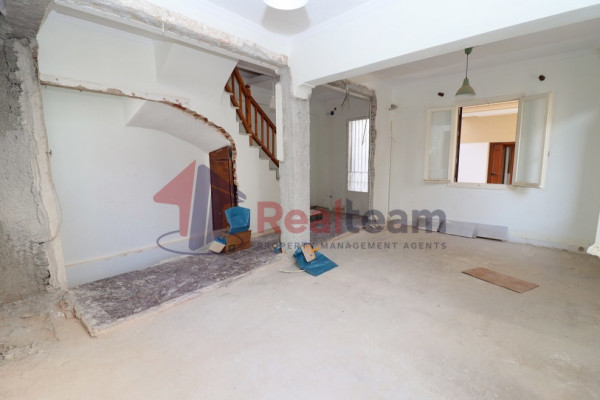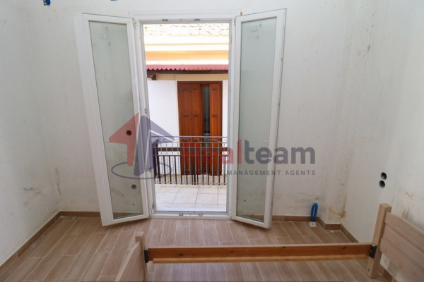 The first level has its own separate entrance but is connected to the semi-basement with the internal staircase. On the first level we find a single room which has been partially renovated, has simple wooden frames and a mosaic floor.
