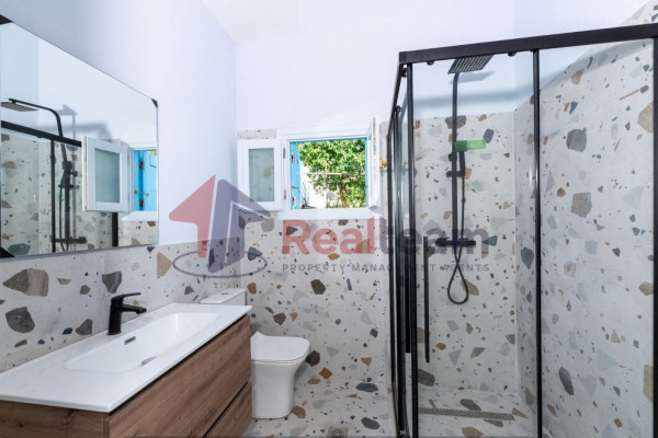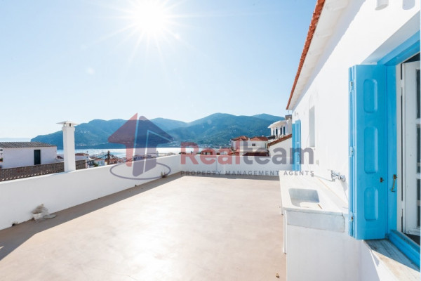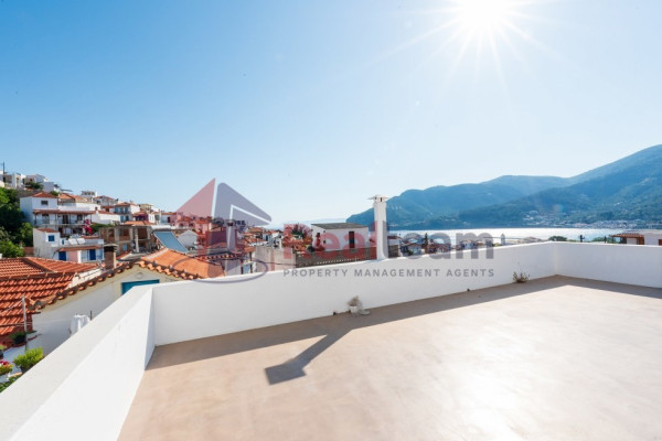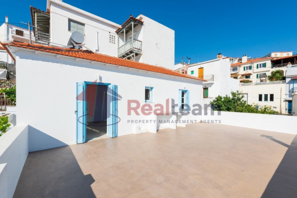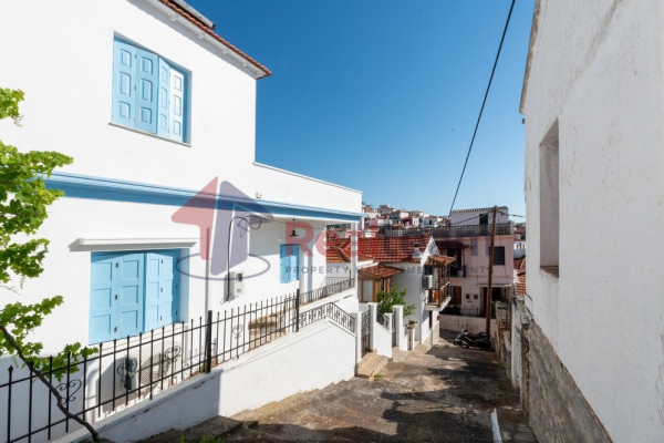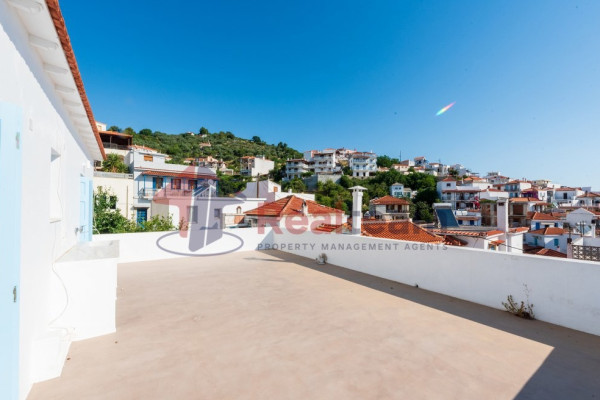 For sale is a two-story, airy, bright, sunny detached house in very good condition with a total area of 145 sq.m. in Skopelos Town on a plot of 152 sq.m. The house is surrounded by a courtyard, while on the second level it has a stunning spacious terrace overlooking the sea and the port of the town. The orientation of the property is northeast. It is accessible by a paved road. It is only 200 meters from the market and the town, 900 meters from the nearest beach of Agios Konstantinos and 37 km. from the nearest airport of Skiathos. It has access to the local market, supermarkets, pharmacy, restaurants and cafes. The property consists of 3 bedrooms, two bathrooms, two living rooms and a kitchen. It also has a storage room on the ground floor. The property was built in 1945 and renovated in 2023. During the renovation, plumbing, electrical, tiles, bathrooms and window frames were replaced. The floors are tiled and mosaic, the window frames are wooden with double glazing. The property has air conditioning, solar and oil heating.