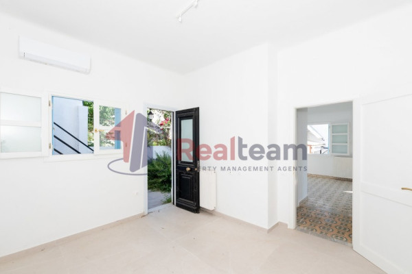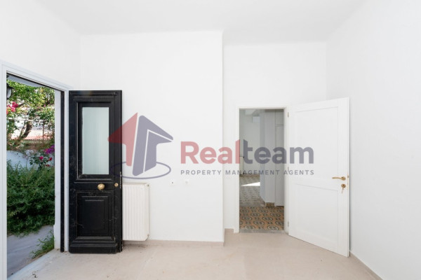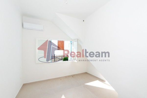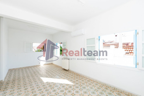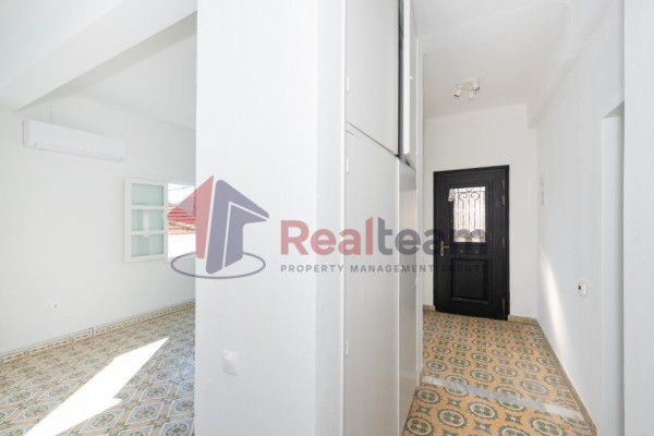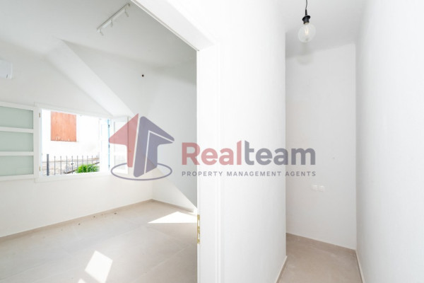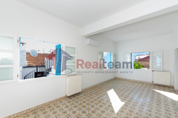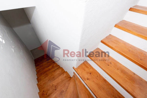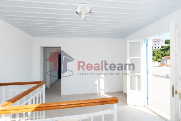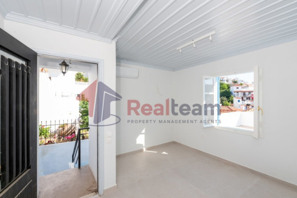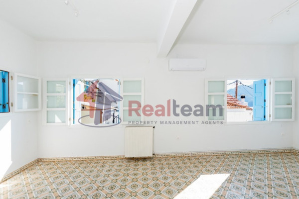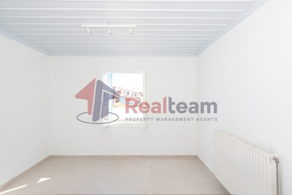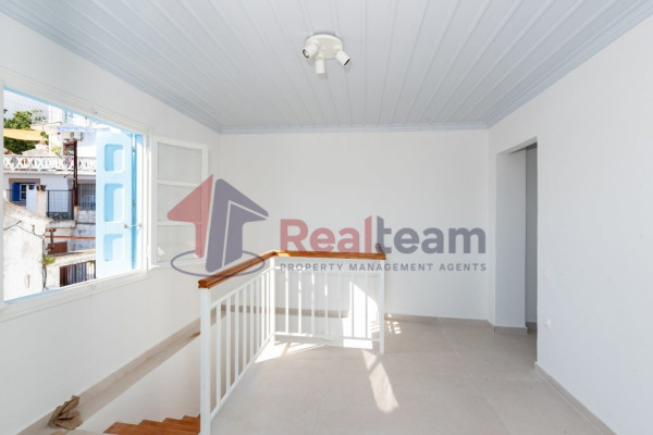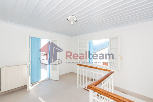 The main entrance to the property is located on the street facade. Upon entering we encounter an open space that hosts the living room which has plenty of light from the windows all around it. Then we are led to the bathroom and a bedroom located at the back of the house. Continuing left from the living room we are led to the second bedroom and then following the internal wooden staircase we reach the second level and the most impressive point of the property as in addition to the third bedroom, the living room and another bathroom it has a spacious, sunny, airy terrace with an unobstructed view of the entire urban landscape, the sea and the port of the island, giving beautiful moments of relaxation to whoever acquires it. It is an ideal choice for both permanent and holiday residence, as well as for tourist exploitation.