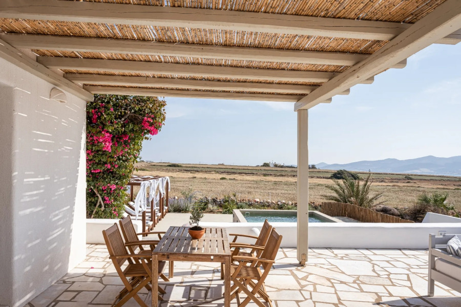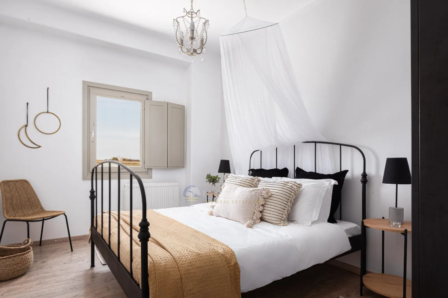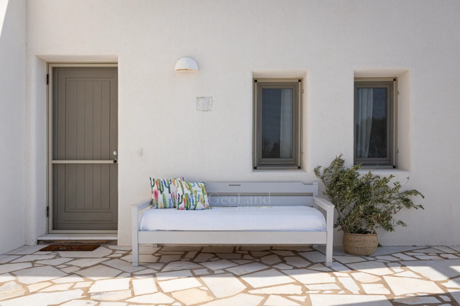 Property Code: 7770 - Villa FOR SALE in Paros Pounta for € 870.000 . This 183.00 sq. m. furnished Villa is on the Ground floor and features 5 Bedrooms, 3 Livingrooms, 3 Kitchens, 4 bathrooms . The property also boasts Heating system: Underfloor Heating - Heat pump, wooden floor, view of the Sea, Window frames: Aluminium, Armourplated door, accessibility for people with disabilities, a storage unit sqm, garden, fireplace, swimming pool, A/C, insect screens, double-glazed windows, solar-powered water heater, BBQ, open space. The building was constructed in 2011 and renovated in 2023 Plot area: 3500 s.q. . Building Energy Rating: B+ Distance from sea 500 meters, Distance from the city center: 6000 meters, Distance from nearest village: 4000 meters, Distance from nearest airport: 1000 meters, This villa in Punta, Paros, is an excellent choice for those seeking luxury, privacy, and an authentic Cycladic atmosphere. It is a fully furnished single-story residence with a total area of 183 m², built on a plot of 3,500 m², in a quiet and unspoiled spot on the west side of the island, with unobstructed views of the sea and the sunset. Its location offers complete tranquility and privacy, while at the same time being a short distance from the port of Punta and the sea. Available from GEOLAND REAL ESTATE. Upon entering the main residence, visitors are greeted by a spacious open-plan area combining a living room, dining room, and fully equipped kitchen. Light floods in through the large windows, highlighting the natural materials and simple elegance of the decor. The traditional wooden beams on the ceiling and the details around the fireplace give a feeling of warmth and island hospitality, while the combination of white surfaces with the earthy tones of the floors and furniture creates a harmonious atmosphere of relaxation. The residence has a master bedroom with a private en-suite bathroom, as well as two additional bedrooms that share a common bathroom. All rooms are bright, with large windows that allow natural light to dominate throughout the day, while direct access to the terrace allows constant contact with the outdoor space and views of the Aegean Sea.The large terrace, measuring approximately 100 square meters, is an extension of the interior living room and is designed for relaxation and outdoor living. The sun loungers around the pool, the outdoor dining area under the awning, and the seating areas create an ideal setting for moments of relaxation or social gatherings with friends and family. From every point on the terrace, the view of the sea is unobstructed, while the sunset offers a unique natural spectacle every afternoon. External independent steps provide access to the first guest room, with an area of 40 sq. m. Upon entering this space, the feeling of brightness and comfort continues: large windows allow light to penetrate everywhere, while the open-plan living room and kitchen are functional and cozy. The kitchen is fully equipped, the living room is furnished with comfortable furniture, and the dining area blends harmoniously into the space. The guest house also has a comfortable bedroom and a bathroom, offering complete autonomy. A second guest house, of the same size and layout, is located on a different side of the plot, with a separate entrance, ensuring complete privacy for both guests and owners.The villa's outdoor area is in perfect harmony with the island's natural environment. The pool, surrounded by seating areas, sun loungers, and outdoor dining areas, serves as a central relaxation point. From every corner of the property, the view of the sea is panoramic, while the environment exudes tranquility and privacy. The carefully selected plantings, stone elements, and clean architectural lines highlight the uniqueness of the landscape and create a setting that combines authenticity and discreet luxury. The villa in Punta, Paros, is a residence where traditional Cycladic architecture meets modern comfort. Each space has been designed with an emphasis on functionality, aesthetics, and connection to natural light and the sea. It is an excellent choice both as a permanent residence and as a high-end vacation home or investment opportunity in one of the most beautiful and peaceful locations on Paros. If you can already see yourself as the next proud owner of this unique villa, book your appointment with GEOLAND and let us take you to this amazing place and answer all your questions.