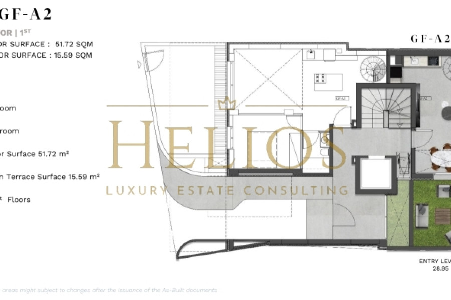 Zum Verkauf steht in Pagrati in einem 9-stöckigen Gebäude im Bau ein schönes Loft im Erdgeschoss von 51,72 m². Es liegt an einem zentralen Ort, in der Nähe von öffentlichen Verkehrsmitteln und dem Markt, während Kallimarmaro weniger als 10 Minuten zu Fuß und Syntagma weniger als eine halbe Stunde entfernt ist. Das Gebäude folgt der Minimal-Philosophie mit großen Glasflächen für viel natürliches Licht, funktionalen Räumen und hervorragenden Materialien. Es besteht aus einer offenen Küche mit Wohnzimmer im Erdgeschoss (28,95 m²) mit Zugang zu einem privaten Außenbereich von 15,59 m², während wir im Dachgeschoss (22,77 m²) 1 schönes Hauptschlafzimmer mit Badezimmer haben. Das Loft wird der Energieklasse A+ entsprechen und über autonome Heizung und Kühlung verfügen. Es wird über eine Sicherheitstür, eine Alarmanlage und Laminatböden verfügen. Zu diesem Zeitpunkt kann der Interessent jedoch einige Änderungen an Materialien und Layout vornehmen. Darüber hinaus wird das Loft Zugang zum Fitnessstudio des Gebäudes haben. Die Lieferung wird voraussichtlich Ende März 2027 erfolgen.