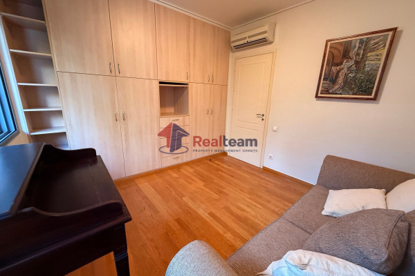 Es handelt sich um eine im Jahr 2005 erbaute Immobilie, die sich im 1. Stock eines vierstöckigen Gebäudes befindet und aus zwei Schlafzimmern, einem geräumigen Wohnzimmer mit Kamin, Küche und Bad besteht. Der Boden besteht aus Parkett und die Fenster sind aus PVC-Aluminium mit elektrischen Rollläden. Es verfügt über eine autonome Ölheizung und Klimaanlage. Zu den weiteren Ausstattungsmerkmalen gehören eine Sicherheitstür, eine Terrasse mit Gartenblick, Markisen und ein Warmwasserboiler. Außerdem gibt es einen Tiefgaragenstellplatz mit elektrischem Garagentor und einem 5 qm großen Parkplatz. Abstellraum, der entweder über eine Treppe oder einen Aufzug erreichbar ist. Die Immobilie wird möbliert mit allen Elektrogeräten angeboten. Es liegt nur wenige Gehminuten vom Vrilissia-Platz und dem Zentralmarkt entfernt.