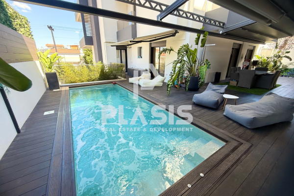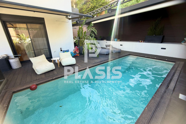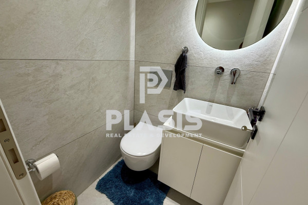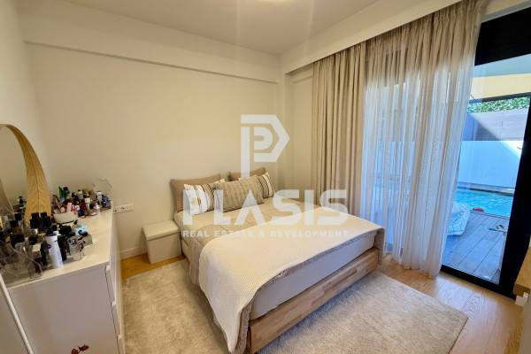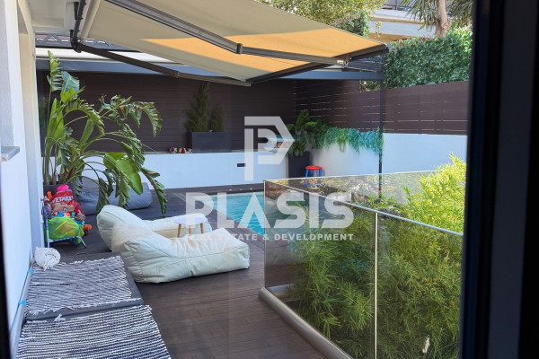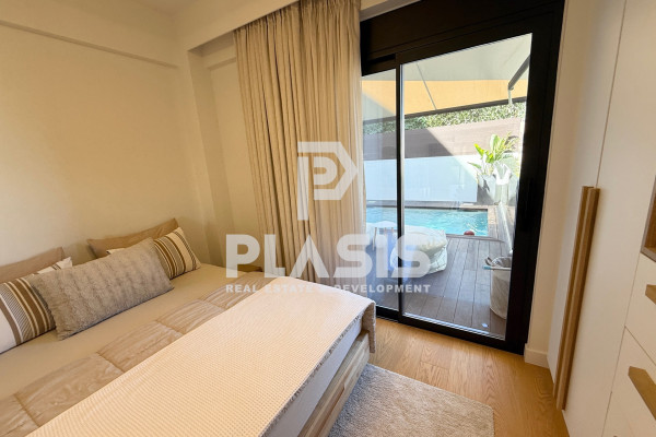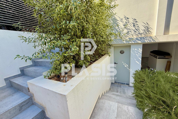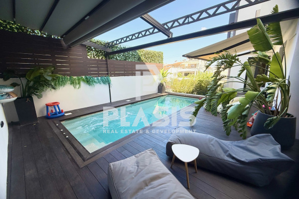 Apartment For Sale, floor: Ground floor, in the area: Alimos - Center. The area of the property is 106 sq.m. and is located on a plot of 525 sq.m. It consists of: 3 bedrooms, 1 bathroom, 1 wc, 1 kitchen, 1 living room, while it has 2 parking spaces (2 in the basement). It was built in 2023. The heating of the property is Individual with a Heat Pump, while also available Underfloor heating, Heating per level, Air Conditioning, Solar, Boiler, Ventilation, Soundproofing, Thermal insulation, it has Aluminum frames, Thermal break with Double glazing, energy certificate: A+ and the floors are: Tiles, Wood. Balconies. Its condition is: Amazing, located near Metro, Transportation, School, Market, 12000 Meters from city, 800 Meters from beach, 28000 Meters from airport, has good view and has Southwest orientation. The property is Floor Apartment, Painted, Frontage, Bright, Airy, Sunny, Airy, Handicapped Access/Ramp, Luxurious, it is suitable for Professional, Investment, Income, Cohabitation and also has the following features and advantages: Screens, Awnings, Elevator, Jacuzzi, Electric. Appliances, Storage, Pool, Garden, Security Door, CCTV, Alarm, Internet, BBQ, Satellite, Night Power, Automatic Watering, Lawn, Trees, Pets Allowed, Quiet Neighborhood, Photovoltaic Panels, Fiber Optic, Smart home, Terrace, Drainage. PROPERTY DESCRIPTION: Luxury newly built property of 106 sq.m. on the ground floor, with a private garden of 140 sq.m. and heated swimming pool with jacuzzi 16.25 sq.m., wooden deck, pergola with retractable awning and landscaped greenery. It has 3 bathrooms, bathroom, wc, large verandas, living-dining room with open plan kitchen, while the bathrooms are comfortable with access to the garden. It includes a separate semi-basement space of 28 sq.m. (single with bathroom and air conditioning). The equipment includes built-in appliances and furniture. There is a basement warehouse and 2 parking spaces (2G). ENERGY BUILDING: Energy class A+, external thermal facade of 10 cm., aluminum energy frames with thermal break and securit glazing. HEATING & AIR CONDITIONING: Underfloor heating with individual natural gas boiler and autonomy per room. Concealed VRV ceiling air conditioning (cooling - heating). EQUIPMENT: Advanced smart home automations with the possibility of upgrading, pre-installation of alarm, perimeter cameras, screens, waiting for electric awnings, built-in appliances, furniture. MATERIALS: Oak floors throughout the house, Corian kitchen counter, hanging basins, luxury and modern materials selected by decorator, constructions with false ceilings and hidden lighting. DESIGN: Luxurious construction with careful details, modern aesthetics and functional spaces. LOCATION: Alimos - Pani, in a beautiful location with an open horizon, green surroundings and a quiet spot, close to the beach, market, playground and schools.. Price: €950,000. Plasis Real Estate Glyfada, Contact Phone: 2109601909, email: