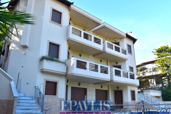 Das Gebäude mit einer Gesamtfläche von 580 m² ist in drei separate Wohnungen unterteilt: eine Wohnung im Erdgeschoss und zwei darüber liegende, identische Maisonette-Wohnungen mit Meerblick nebeneinander. Die Erdgeschosswohnung verfügt über einen Wohn-Essbereich, eine ausgestattete offene Küche, 3 Schlafzimmer und 3 Badezimmer, mit Kamin und Zugang zu einem großen beheizten Außenpool. Der Zugang ist vom offenen Parkplatz aus einfach. Zu den weiteren Räumen gehören Heizraum, Maschinenraum, Abstellraum, Grillplatz und zwei geräumige Aufzüge mit drei Haltestellen. Jede Maisonette ist wie folgt aufgeteilt: Im ersten Stock befinden sich ein Wohn-Essbereich mit Kamin und Balkon, eine separate Küche mit Garten und Pergola sowie ein Gäste-WC. Die zweite Etage umfasst drei Schlafzimmer – eines davon als Hauptschlafzimmer – mit Balkon und ein Badezimmer, das zwei der Schlafzimmer bedient. Jede Ebene verfügt über eine autonome Ölheizung, ein Dreifach-Solarsystem, eine Alarmanlage und insgesamt 4 Parkplätze innerhalb des Grundstücks (einer in der Pilotis). Die Lage der Immobilie auf der Karte ist ein Hinweis auf die allgemeine Lage und spiegelt nicht die genaue Lage wider. Preis: 1.950.000 €. EPAVLIS REALTORS, Tel: 2109945719, E-Mail: