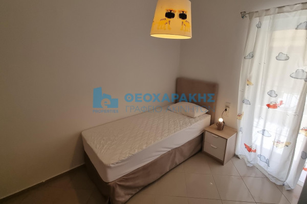 Koroni Magara. 3 bedroom apartment on the 1st floor, 100 sq m, plus l underground storage and closed parking. Please, have a look at the video to get a more complete picture of the property https://youtu.be/Mz8VkdKMcEk This is a twenty-year-old construction but in excellent condition, with renovated wc, bathroom, and modern features. The apartment building has a huge common area for children, fenced & protected. Property code: 5668.