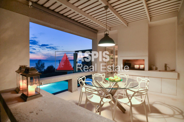 ID.2034605 – Maisonette zum Verkauf in Nea Artaki. Die Gesamtfläche des Grundstücks beträgt 400 qm. und befindet sich auf einem Grundstück von 426 qm. Das Haupthaus hat eine Fläche von 318 m² und besteht aus: Flur, Wohnzimmer mit Kamin, Esszimmer, voll ausgestatteter Küche, Gäste-WC, 4 Schlafzimmern mit Badezimmern (ensuite), Wohnzimmer, Büro im Dachgeschoss, Wäscheraum, Waschküche, Maschinenraum und Lagerräumen (84 m²). Das Anwesen wurde 2007 erbaut (seit 2020 als Hauptwohnsitz, zuvor als Ferienhaus genutzt). Verfügbar sind Fußbodenheizung, Klimaanlage (Schlafzimmer und Dachboden), Sicherheitsalarm, Beleuchtungs- und Heizungssteuerungssystem (Fernbedienung), elektrische Rollläden aus Metall. Das Anwesen ist hell, luftig, sonnig und verfügt über überdachte Veranden, einen Garten, einen Hof, einen 38 m² großen Swimmingpool, einen 46 m² großen Grill, Gras und Bäume. Es liegt in Strandnähe, 50 Meter vom Meer entfernt und bietet uneingeschränkten Meerblick. Sein Zustand ist ausgezeichnet, Haus am Meer, luxuriös, modern, geeignet für Ferienhaus, Investition. Aspis Real Estate Chalkidas, Kontakttelefon: 2221303681, E-Mail: