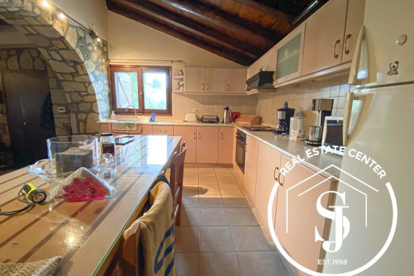 Die Residenz mit einer Gesamtfläche von 162 m2 besteht hauptsächlich aus Stein und wird durch Elemente aus Kastanienholz ergänzt, was sowohl im Außen- als auch im Innenbereich eine warme und traditionelle Atmosphäre bietet. Das Haus ist auf zwei Ebenen konfiguriert. Im Obergeschoss finden Sie drei geräumige Schlafzimmer, von denen zwei Zugang zu Balkonen haben – ein großer Balkon mit Blick auf den Wald und ein kleinerer. Darüber hinaus befinden sich im Obergeschoss ein komfortables Badezimmer und ein geräumiger Dachboden.