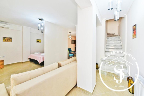 Zu verkaufen: Eine wunderschön gestaltete freistehende Villa mit 142 m². Wohnfläche auf zwei Etagen, gelegen in der ruhigen Gegend von Paliouri. Die sorgfältig geplante Aufteilung umfasst 3 geräumige Schlafzimmer, 2 Badezimmer, eine Designerküche und einen hellen Wohnbereich mit direktem Zugang zur Terrasse.