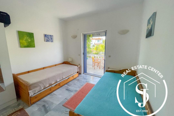Lovely house in the thriving quiet location of Paliouri with a great location for nature lovers and 95 square meters of living space. The home features 2 bedrooms, 2 extra large full bathrooms, kitchen and large living room with wood stove. The house has a great atmosphere surrounded by tall trees and bushes in the garden. Many extras with the house such as aluminum window fittings, parking, security door, screens, 1 large storage room, AC inverters, garden view, heating, outdoor beautiful shower with hot water and much more. The beach is only 600 meters away and all the best beach bars are in the area of Xenia, while the shops are the nearest town. To view this wonderful 2 story home call us today! ! This complex is perfect for kids and rental income!! ……. Negotiable Seller...