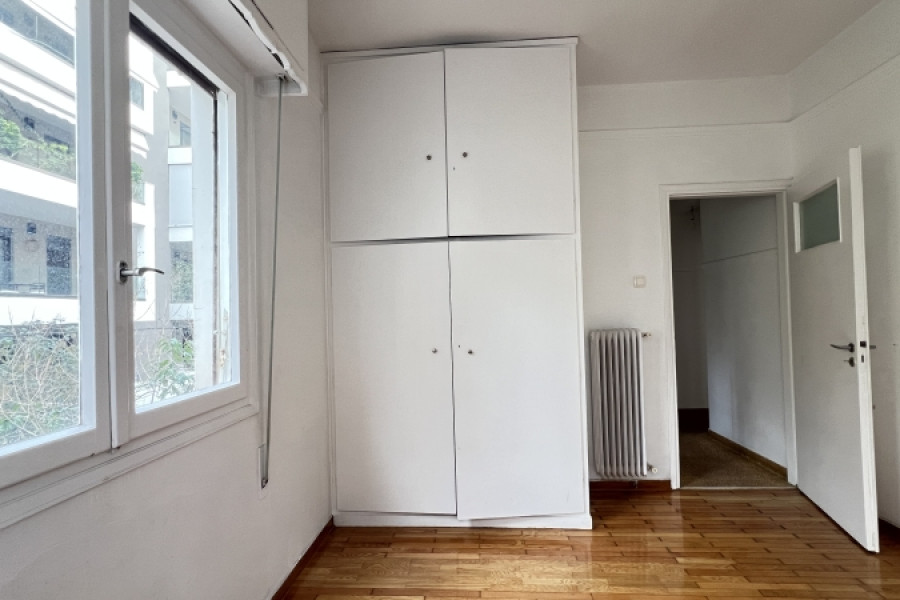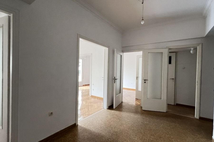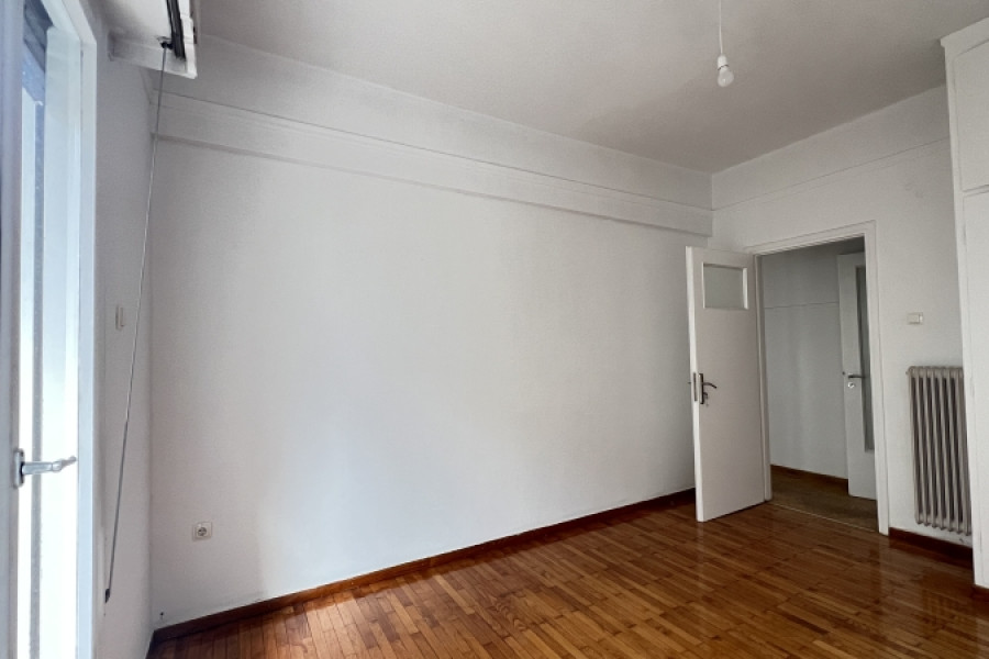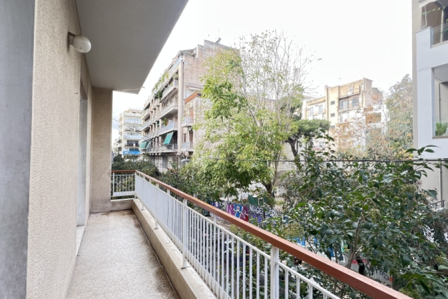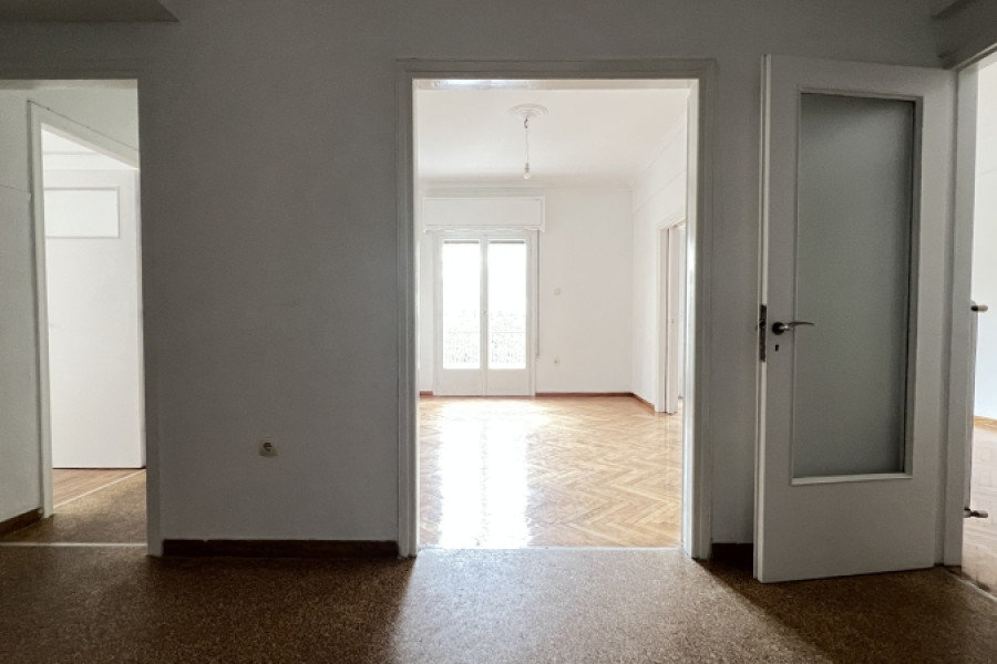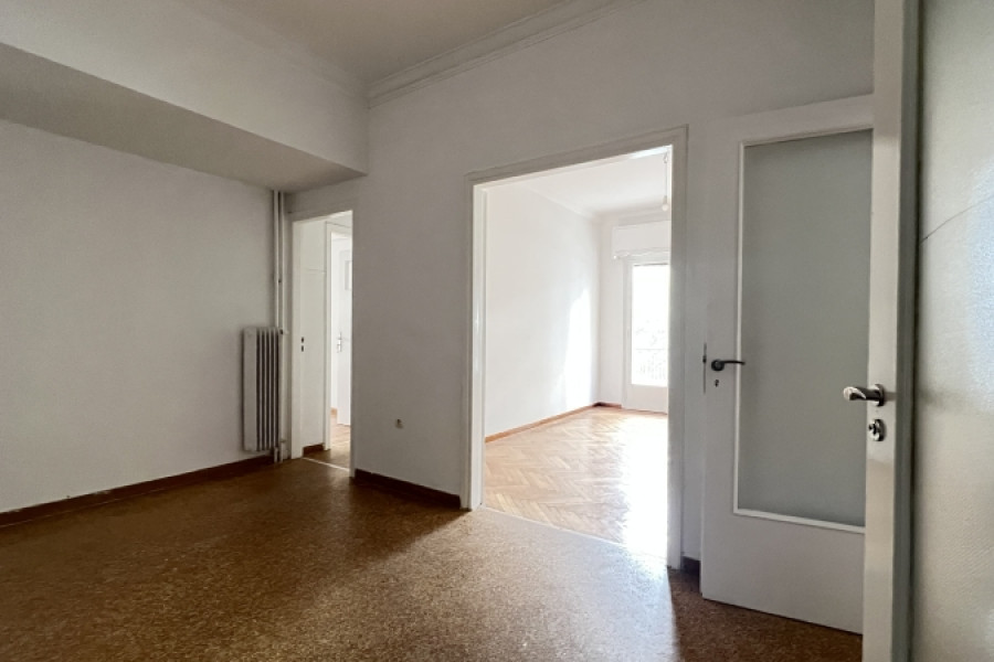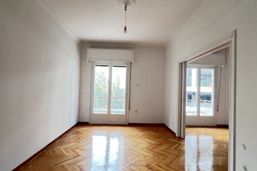 This magnificent first-floor corner apartment perfectly combines functionality and aesthetics. One side boasts a view of a tree-lined pedestrian walkway and an elegant neoclassical building, creating an atmosphere of tranquillity and beauty. The apartment is bright and spacious with two bedrooms and two reception areas. One of the reception areas could be converted into a third bedroom or a home office for those who work from home. In addition, there is a separate room that can be used as a storage room or pantry, which is accessible from the kitchen. The kitchen is spacious with an elevated storage space and its own balcony in the uncovered area. The large bathroom has space for a washer-dryer, and there is also a guest WC with an additional storage space. The recently maintained wooden floors with an impressive herringbone pattern add a sense of elegance to the space. The property is in a strategic location, close to public transport, Fokionos Negri Street and Agios Georgios Square. It is an excellent proposition at a very good price, with potential for development according to the needs and aesthetic preferences of its new owners.