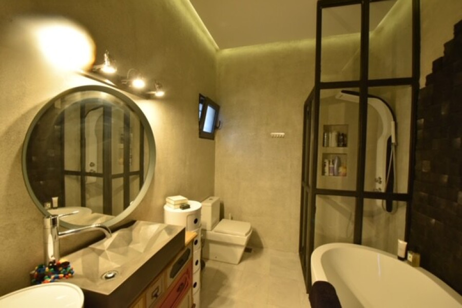 For sale building of 240 sq.meters in Athens. The building has 2 levels. Erdgeschoss consists of 2 bedrooms, living room with kitchen, one kitchen, 2 bathrooms, one storeroom, one hot tub. 1. Etage consists of 2 bedrooms, living room with kitchen, 2 bathrooms, one storeroom. The property offers a roof garden. A magnificent view of the city, the forest opens up from the windows. There are: solar panels for water heating, a fireplace, air conditioning, awnings, heating. The owners will be leaving the furniture with the sale. Building has an elevator. There is an alarm system installed. Extras included with the property: garage. The property boasts a swimming pool of private use.