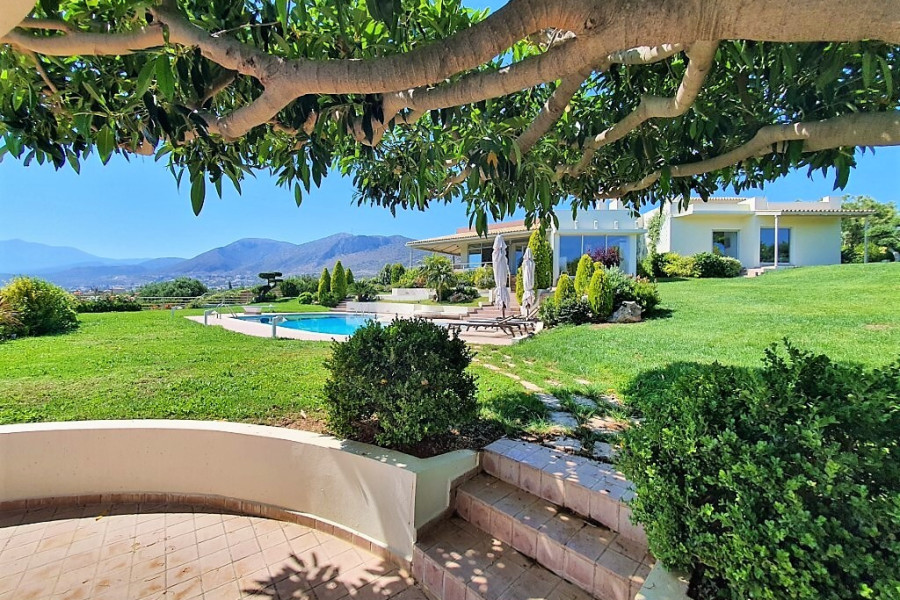Die Villa ist 253 m² groß und befindet sich auf einem Amphitheater-Grundstück von 3800 m² mit absoluter Privatsphäre, uneingeschränktem und unverbaubarem Blick auf das Meer, die Olivenhaine in den Bergen und die Stadt Limenas Hersonissos.