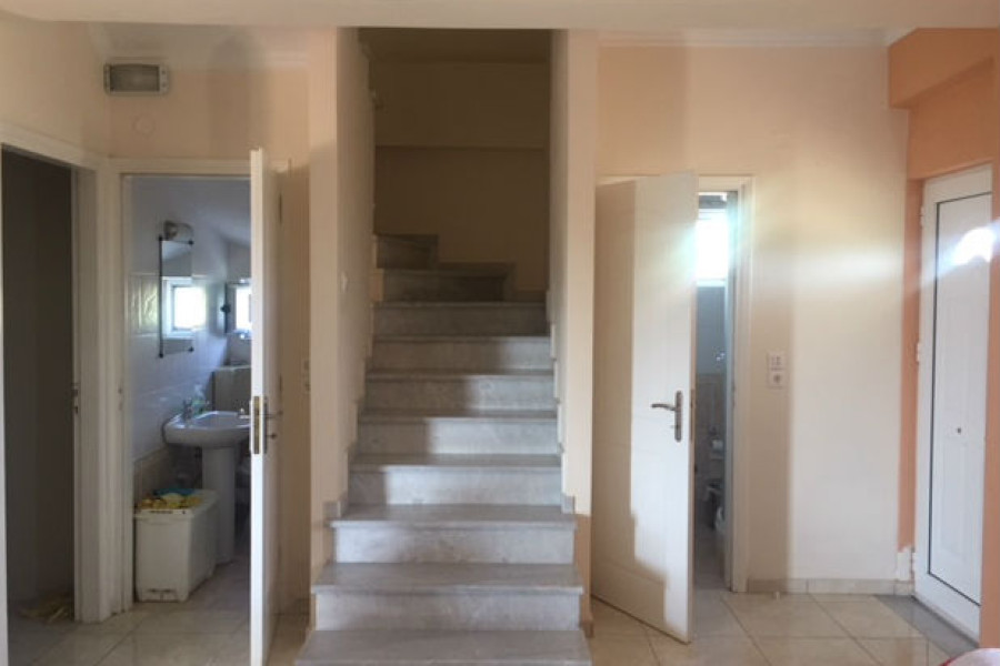 For sale 2-storey house of 98 sq.meters in Eastern Peloponnese. Erdgeschoss consists of one bedroom, living room with kitchen, one shower WC, one WC. 1. Etage consists of 2 bedrooms, one bathroom. A view of the sea opens up from the windows. There are: solar panels for water heating, air conditioning, heating. The owners will be leaving the furniture with the sale. Extras included with the property: parking space, garden.