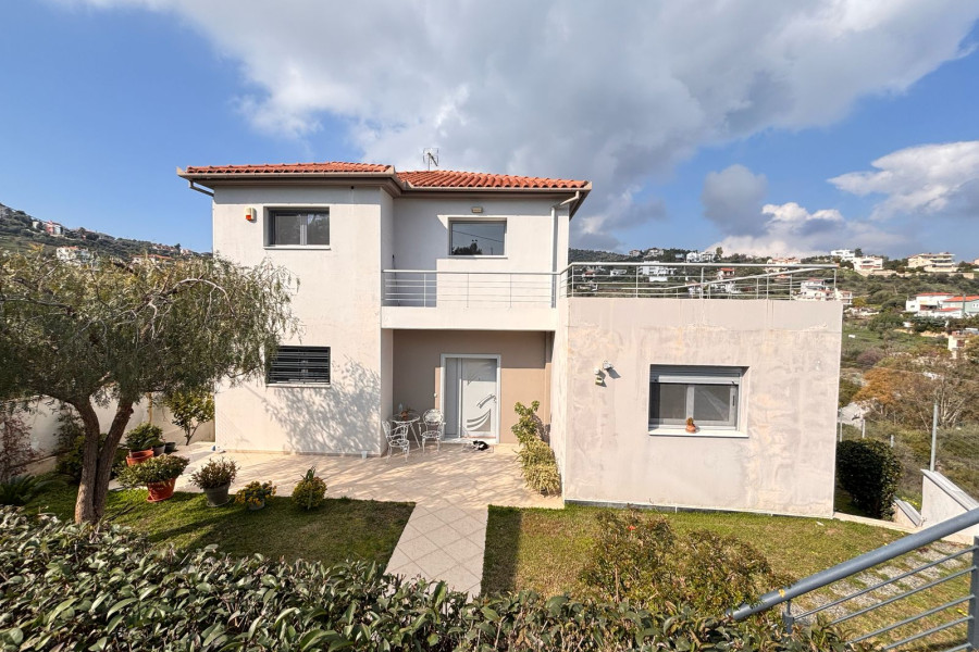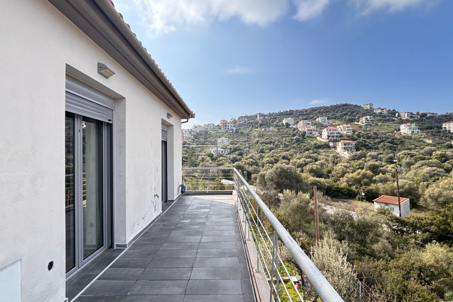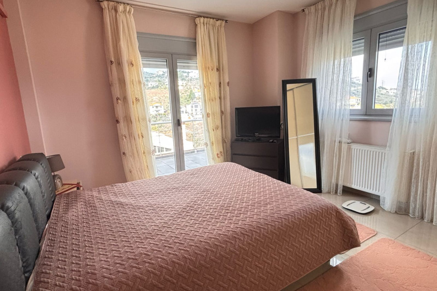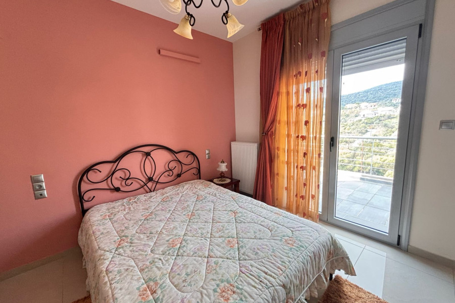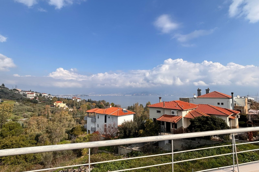 Maisonette 299 sqm on a plot of 600 sqm for sale in Agios Stefanos, Volos. The maisonette consists of two floors. Entering the ground floor, there is a spacious living room, kitchen, dining area, a bedroom, and a bathroom. With an internal staircase, we access the upper floor, which consists of two bedrooms and a bathroom. The basement, which is connected to the rest of the house via an internal staircase, can be converted into a separate apartment. The property offers stunning sea views, very spacious balconies and garden. The property is ideal for Golden Visa.