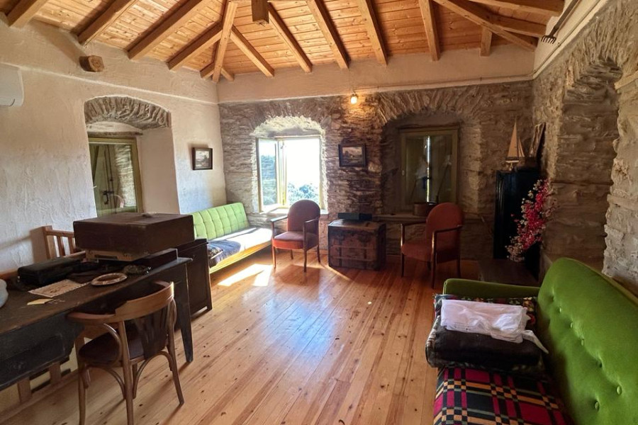 110 m² großes Steinhaus auf einem 120 m² großen Grundstück in Metochi, Argalasti. Das Haus besteht aus zwei Etagen. Im Erdgeschoss finden wir ein geräumiges Wohnzimmer, eine Küche und ein Badezimmer. Über eine Innentreppe gelangt man in die erste Etage, wo sich ein Wohnzimmer mit Kamin und zwei Schlafzimmer befinden. Das Anwesen bietet einen atemberaubenden Blick auf das Meer und verfügt über eine Klimaanlage.