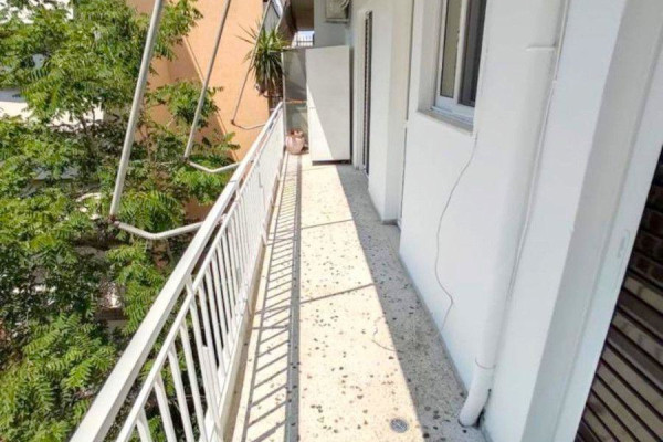 The apartment is 110sqm on the 4th floor. It consists of a comfortable living room, 2 nice terraces, a separate kitchen, 2 bedrooms, 1 bathroom and 1 WC. It also offers security door, aluminum frames with double glazing, central heating with oil, air-conditioning units, etc. The apartment is rented until September of 2026.