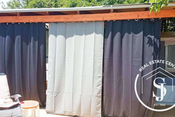 Genießen Sie unvergessliche Sommer in Kassandra mit diesem charmanten Mobilheim mit 25 m². komfortabler Wohnraum im Innenbereich und zusätzlich 100 m². Privater Garten – perfekt zum Entspannen im Freien und zum Leben im Sommer.