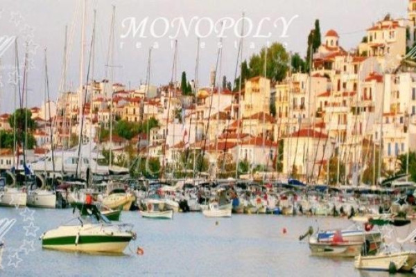 Sporades - Skiathos, Mansion - Hotel 183sqm., ground-1st floor, constructed in 2010. On the ground floor of 75sqm., is the reception, hall, staircase and an apartment with 2 rooms and 3 beds, with private yard and entrance. On the 1st floor of 108sqm. there are 5 rooms with 2 beds in each one, with marble floors and bathroom, air-condition (inverter), Satelite TV, WiFi, mini fridge, double bed, closet, secretary office, commodes and chandeliers. There are double glassed windows soundproof with high energy efficiency. It is made of stone with 70cm. thick walls. The mansion is in front of the port of Skiathos, 15 meters away from the bus station, 50m. from the elementary school and 1Km. from the airport. It has a A class permition from EOT to function and it is 100% full during the summer season.