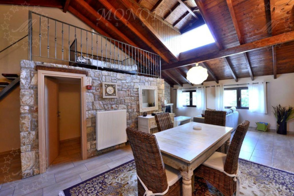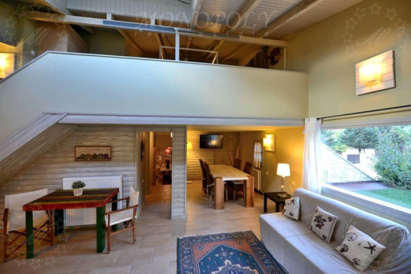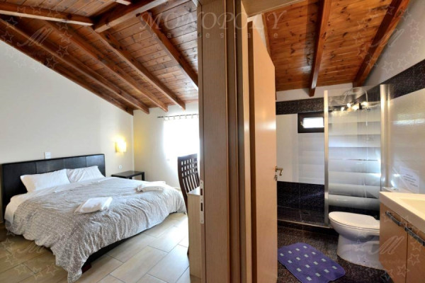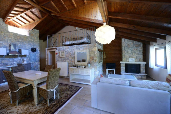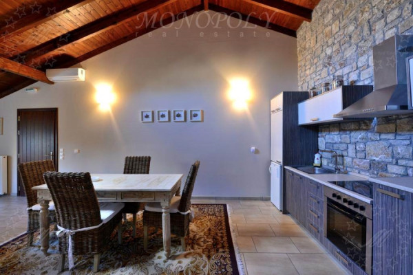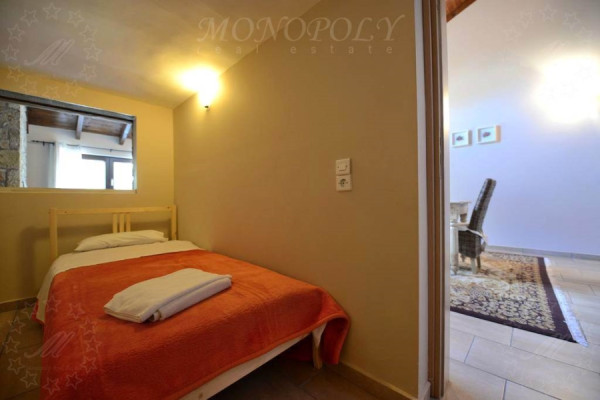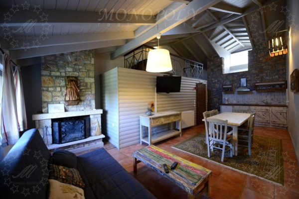 Hotel 310sqm, ground - 1st floor, constructed in 2000, consisting of 4 autonomous residences. Every home is decorated in a unique and different way. All consist of one living room with fireplace, fully equipped kitchen, and at least one bedroom and a bathroom. The larger apartment has 2 master bedrooms, another has an extra loft room, another has a room that can be used as an office and another has a large living room and a lounge that can comfortably accommodate a whole family or a big group. The unit is about 4 km away from Kalavryta next to the Vouraikos river, surrounded by a stone-wall surrounded by an artificial pond with a waterfall, a large lawn area that can be used for events or parking space. The entire unit from the houses to the surrounding area is in excellent condition, with very personal work.
