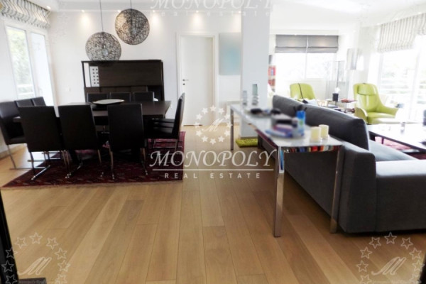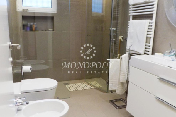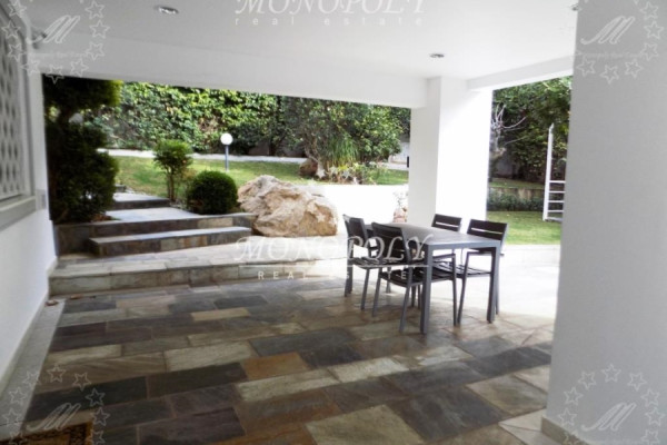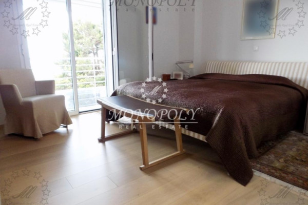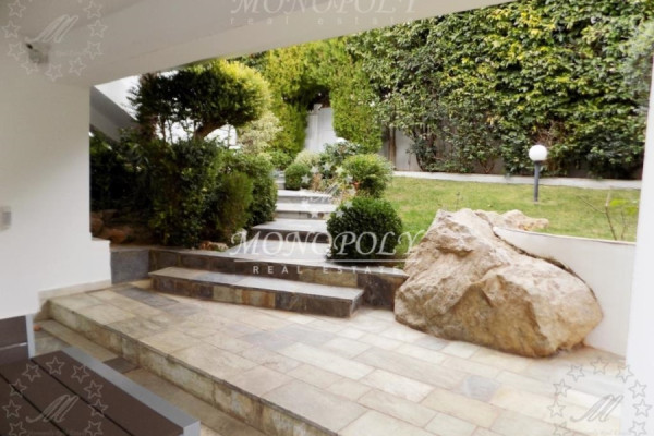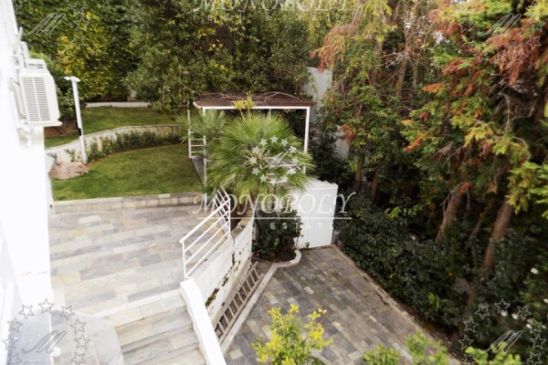 Saronida, luxurious detached house, 240sqm., ground floor-1st floor, renovated in 2017, on a plot of 840sqm with remaining building factor. It consists of a large living room & dining room with oak floors & fireplace, separate comfortable kitchen with built-in MIELE appliances, corian counters, 4 bedrooms (2 master) all with oak floors, 4 bathrooms. It has autonomy per level with new technology radiators, air conditioning, boiler, double glazed windows, screens, electrical shutters, inner elevator with glass door, 3 security doors, alarm, living room verandas 50sqm. with awnings, overlooking the pool & sea, utility rooms, automatic watering, 25 cubic meters water tank, generator for power supply for the whole house, thermal insulation, video intercom, BBQ, 3-car garage, reinforced yard 1 meter high, special care for rain water, large heated swimming pool (38sqm), pool house with kitchenette & bathroom, lush garden, sea view.