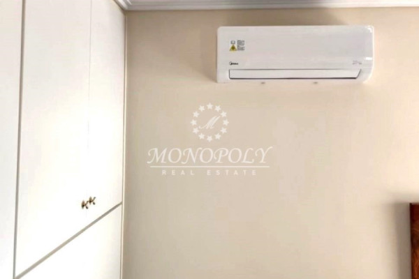 It consists of a spacious living room with fireplace and wooden floors, with access to a wide front terrace with electric awnings and unlimited mountain views, modern separate kitchen, 2 large bedrooms with many closets, wooden floors, 1 bathroom, 1 WC.