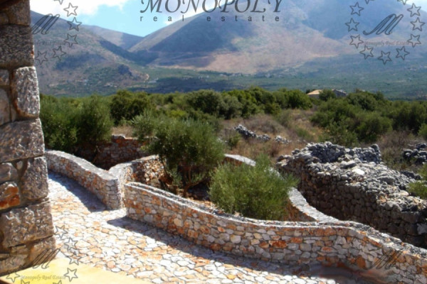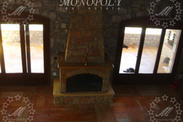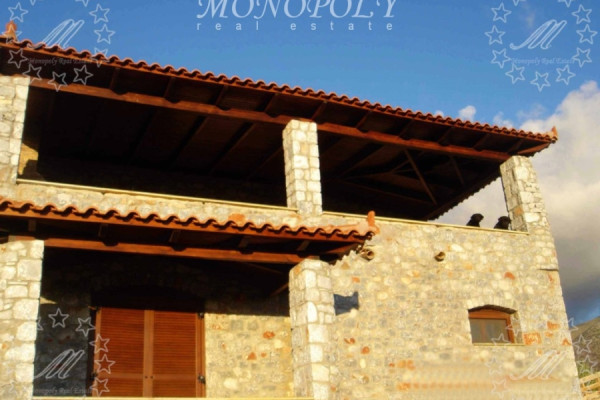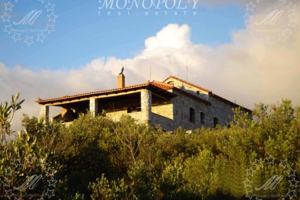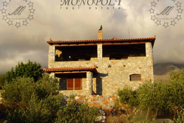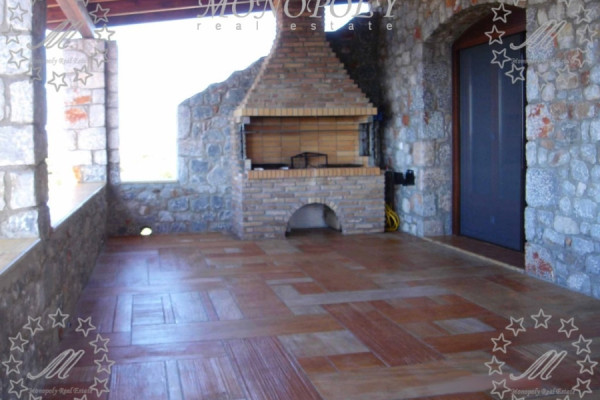 Luxurious traditional Villa 250sqm, with amazing sea view! It has been built in 2006, it is a stone-house in excellent condition, on a 4.000sqm. corner plot. It consists of a living-room with fireplace, 2 kitchens, 4 bedrooms (1 master with bathroom), 2 bathrooms and 1 WC. It has wooden floors, autonomous heating with petrol, boiler, solar water system, air-conditioning, triple glazed windows, security door, security alarm, safe box, CCTV, internet line, satellite receiver, internal staircase, playroom, attic, balconies with awnings, storage room and 2 parking places. The garden has BBQ, trees and grass with automatic watering. It is on 700m. distance from the seaside and 800m. from Kafiona village, 1km. from the national avenue and 10km. from Pirgos Dirou.