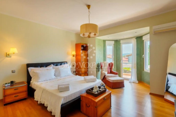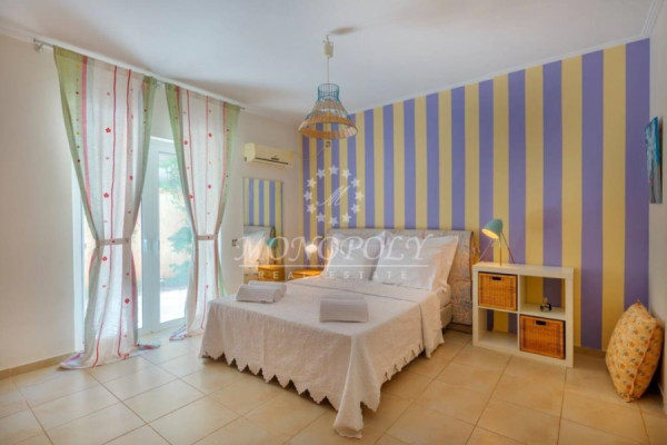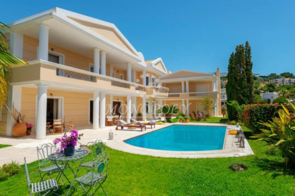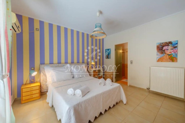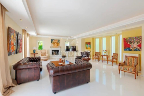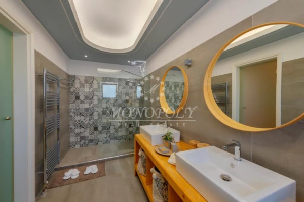 Anavyssos - Agios Nikolaos, 250sqm. from the beach, there are 2 luxurious Independent Maisonettes of 840sqm., for sale, οn a 1.400sqm. plot, on 3 Levels, constructed in 2009. On the ground floor is a large bright living-room with fireplace and dining area, WC, large separate kitchen, bright with lots of windows and direct access to the swimming pool. On the 1st floor are 3 large master bedrooms with wooden floors and bathrooms, 1 WC and a large common balcony of 60sqm. On the top floor is the laundry area. The basement apartment has separate entrance and has a living-room, open plan kitchen, sitting hall with fireplace, 1 master bedroom, WC, storage spaces, gym and storage. It has independent own heating per level, air condition, solar water system and boiler. There is a large marble inner staircase, double glazed windows, security door, CCTV, satellite TV, hidden spotlights, electric shutters, high quality materials and 4 parking places in the garage. On the large garden of 520sqm. is the 48sqm. swimming pool, the large BBQ and a WC with shower. It is located 2 minutes from the beach on foot, and 20` by car from the airport.