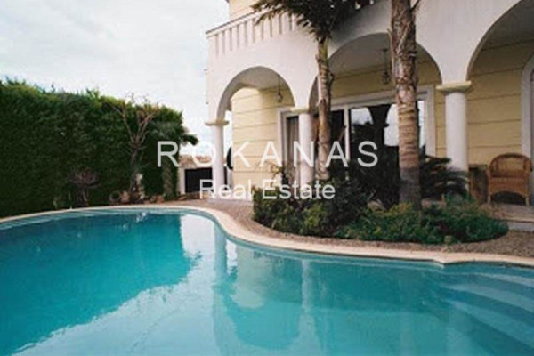 For Rent Villa, Alimos, Pani, 357 sq.m., In plot 380 sq.m., 3 Levels, Ground floor Floor, 5 Bedrooms, 3 Bathrooms, 1 WC, 2 Κitchen/s, 2 Fireplace, Floors: Wooden floors + Marble, Frames: Aluminum, 3 parking, Building Year: 2003, Certificate Energy: C, Feautures: Security door, Security alarm, CCTV, Storage room, Fireplace (2), Attic, Jacuzzi, Double Glazed Windows, Window Screens, Balconies, BBQ, Furnished, Neoclassical, Luxury, Airy, Roadside, Bright, On Corner, AirConditioning, Solar water system, Boiler, Swimming pool, Back yard (Garden), New Construction, Autonomous - Petrol Heating, View: Mountain View + Sea view, Price: 7.000€