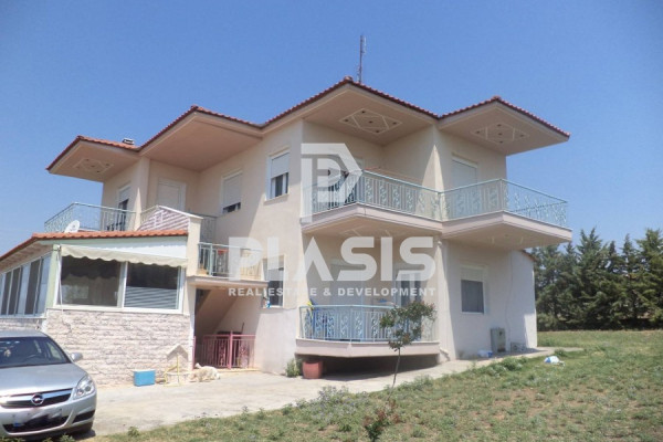 AFITOS, Detached House 240 sq.m. in 821 sq.m. plot, furnished, 3 levels, sub-basement, ground floor, 1st floor, luxurious, for investment, at residential area, for commercial use, year of construction 2012, polyteles, with view panoramiki, 3 b/r, living room, fireplace, 2 bathrooms, 1 WC, kitchen, double-sided, bright, corner, heating n/a, with energy class N/A, with floor type plakaki, with aloyminioy joinery, double glazing, internal staircase, security door, alarm, cable TV, veranda 20 sq.m., garden 821 sq.m., bbq, storage room, 2 closed garages, 2 open garages, piloti, price 350.000€, code 1194